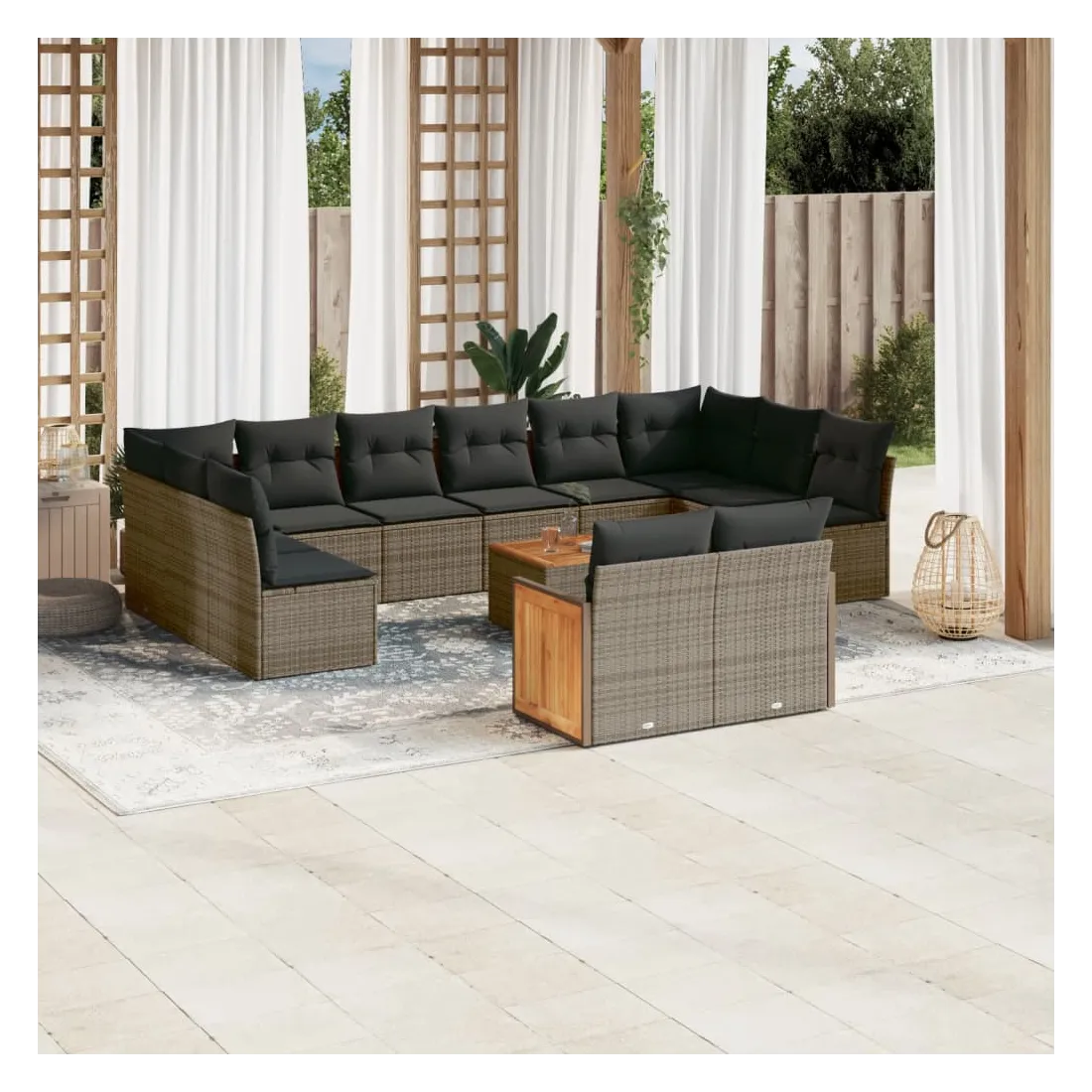 Cet ensemble de canapés de jardin est le complément parfait de votre arrière-cour, terrasse ou patio, offrant un espace confortable et accueillant pour discuter avec la famille et les amis ou simplement se détendre et profiter de l'extérieur. Matériau durable : la résine tressée, également connue sous le nom de poly rotin, est un matériau synthétique solide et nécessitant peu d'entretien qui ressemble au rotin naturel. Il est léger, facile à nettoyer et couramment utilisé pour les meubles d'extérieur en raison de sa durabilité et de ses propriétés de résistance aux intempéries.Fonction de rangement avec sac résistant à l'eau : le mobilier de jardin dispose d'un espace de rangement sous l'assise, complété par un sac résistant à l'eau pour ranger coussins, jouets et autres objets. Le sac intérieur peut être solidement fixé au mobilier d'extérieur grâce à des attaches auto-agrippantes pour plus de stabilité.Dessus stable et facile à nettoyer : cette table de jardin a un dessus en bois d'acacia robuste, durable et facile à nettoyer avec un chiffon humide.Housse amovible et lavable : ces coussins de siège sont dotés de housses amovibles pour un lavage et un entretien faciles.Conception modulaire : cet ensemble de meubles d'extérieur a une conception modulaire, ce qui le rend complètement flexible et facile à déplacer, afin que vous puissiez créer un agencement de meubles d'extérieur personnalisé. Bon à savoir :Pour que vos meubles d'extérieur restent beaux, nous vous recommandons de les protéger avec une housse imperméable.