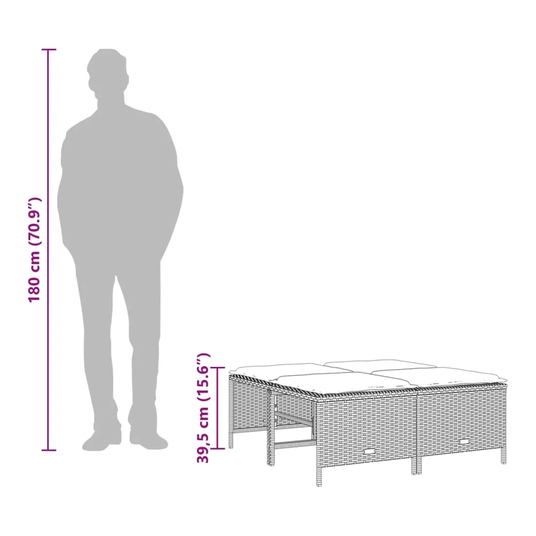 - Dimensions du coussin d’assise (repose-pied) : 51 x 48 x 3 cm (l x P x é)