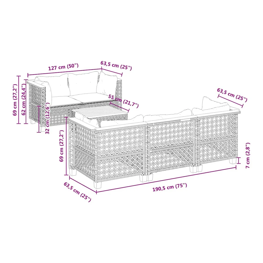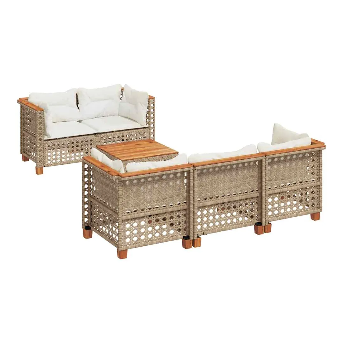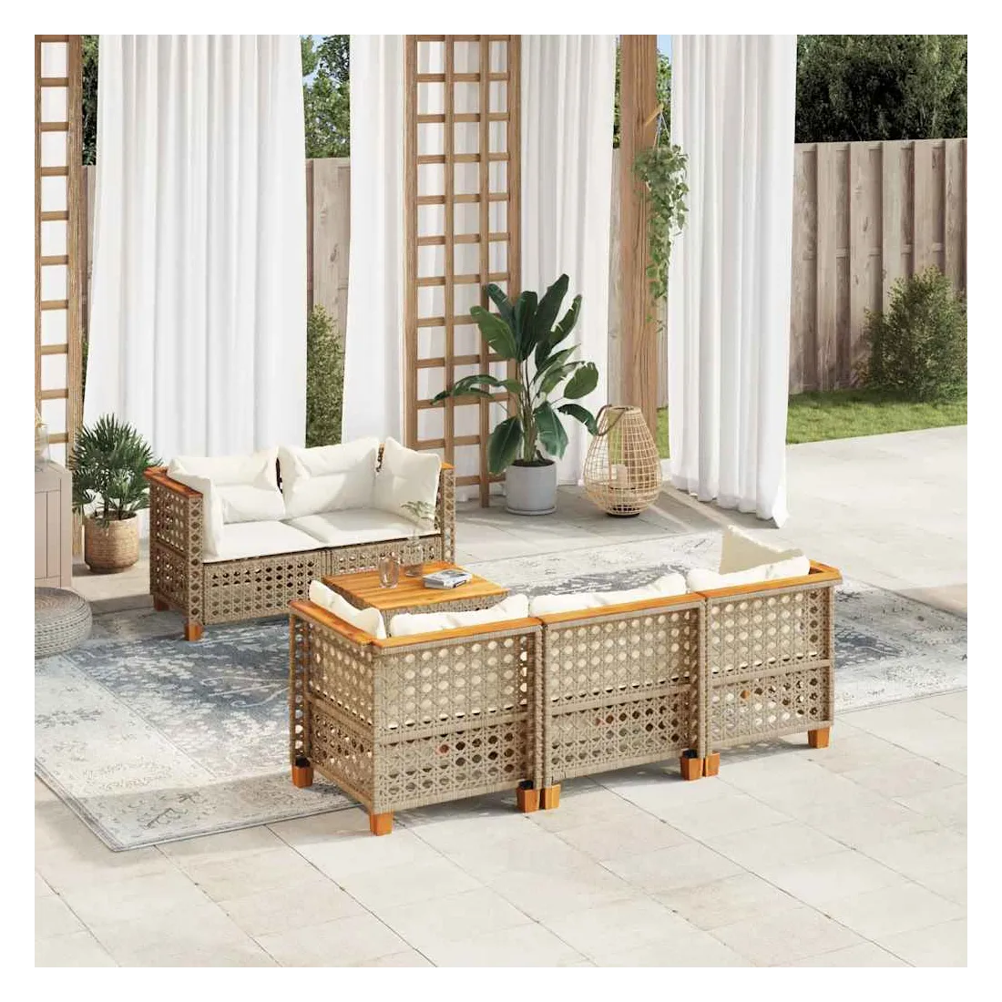 Cet ensemble de canapés de jardin est le complément parfait de votre arrière-cour, terrasse ou patio, offrant un espace confortable et accueillant pour discuter avec la famille et les amis ou simplement se détendre et profiter de l'extérieur. Matériau durable : la résine tressée, également connue sous le nom de poly rotin, est un matériau synthétique solide et nécessitant peu d'entretien qui ressemble au rotin naturel. Elle est légère, facile à nettoyer et couramment utilisée pour les meubles d'extérieur en raison de sa durabilité et de ses propriétés de résistance aux intempéries.Expérience d'assise confortable : ce mobilier d'extérieur, doté de coussins épais, offre une expérience d'assise confortable.Housse amovible et lavable : ces coussins de siège sont dotés de housses amovibles pour un lavage et un entretien faciles.Dessus stable et facile à nettoyer : cette table de jardin a un dessus en bois d'acacia robuste, durable et facile à nettoyer avec un chiffon humide.Conception modulaire : cet ensemble de meubles d'extérieur a une conception modulaire, ce qui le rend complètement flexible et facile à déplacer, afin que vous puissiez créer un agencement de meubles d'extérieur personnalisé. Bon à savoir :Pour que vos meubles d'extérieur restent beaux, nous vous recommandons de les protéger avec une housse imperméable.
