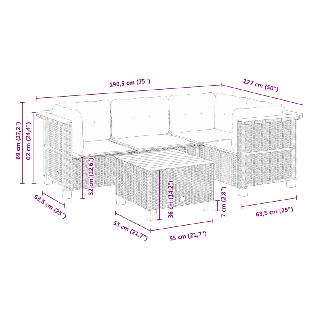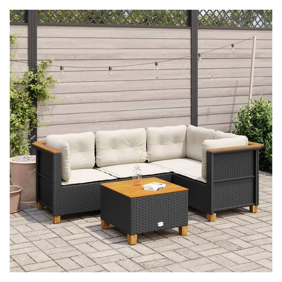 Cet ensemble de canapés de jardin est le complément parfait de votre arrière-cour, terrasse ou patio, offrant un espace confortable et accueillant pour discuter avec la famille et les amis ou simplement se détendre et profiter de l'extérieur. Matériau durable : la résine tressée, également connue sous le nom de poly rotin, est un matériau synthétique solide et nécessitant peu d'entretien qui ressemble au rotin naturel. Il est léger, facile à nettoyer et couramment utilisé pour les meubles d'extérieur en raison de sa durabilité et de ses propriétés de résistance aux intempéries.Expérience d'assise confortable : ce mobilier d'extérieur, doté de coussins épais, offre une expérience d'assise confortable.Housse amovible et lavable : ces coussins de siège sont dotés de housses amovibles pour un lavage et un entretien faciles.Dessus stable et facile à nettoyer : cette table de jardin a un dessus en bois d'acacia robuste, durable et facile à nettoyer avec un chiffon humide.Conception modulaire : cet ensemble de meubles d'extérieur a une conception modulaire, ce qui le rend complètement flexible et facile à déplacer, afin que vous puissiez créer un agencement de meubles d'extérieur personnalisé. Bon à savoir :Pour que vos meubles d'extérieur restent beaux, nous vous recommandons de les protéger avec une housse imperméable.
