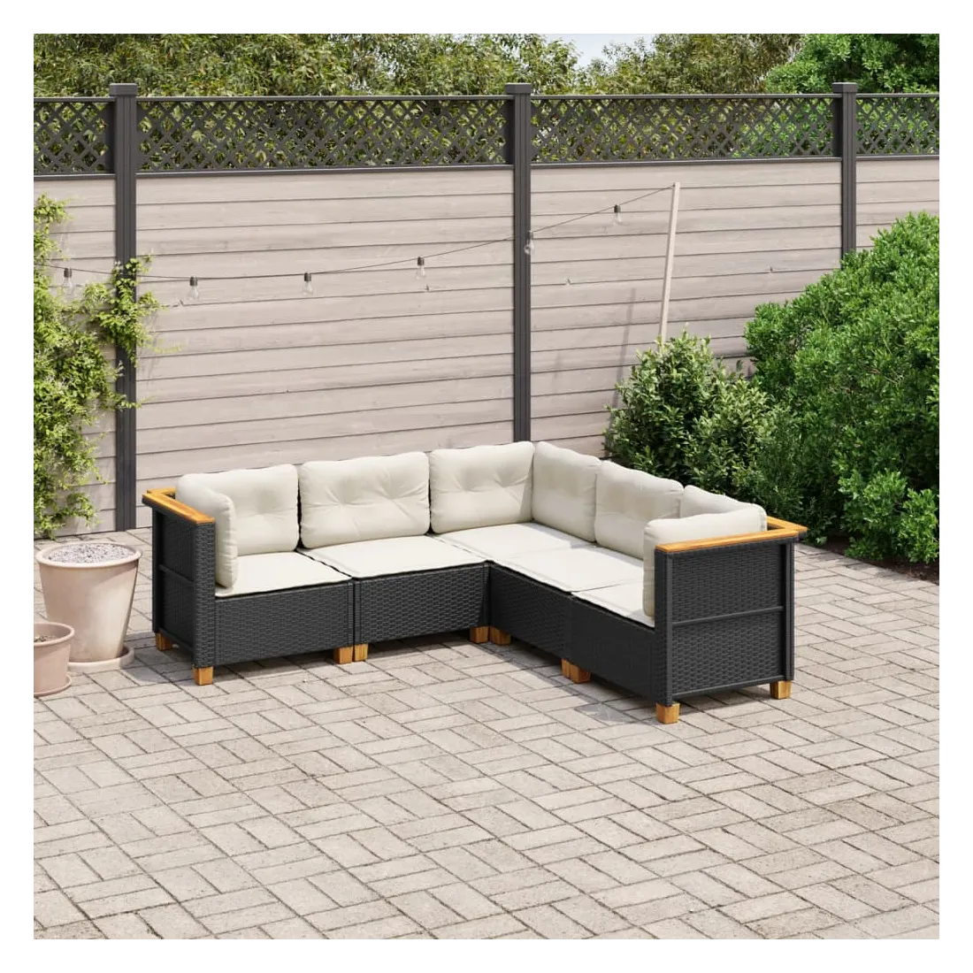 Salon de jardin 5 pcs avec coussins noir résine tressée