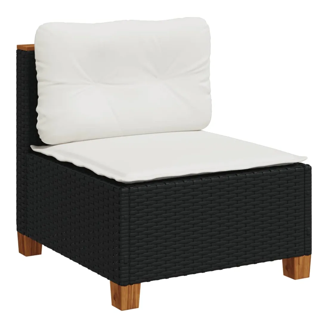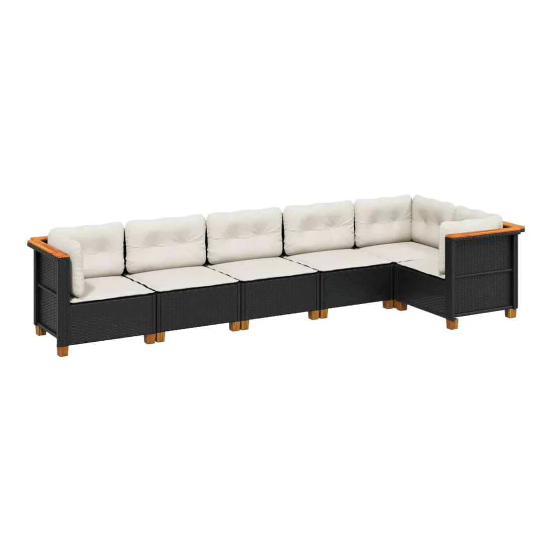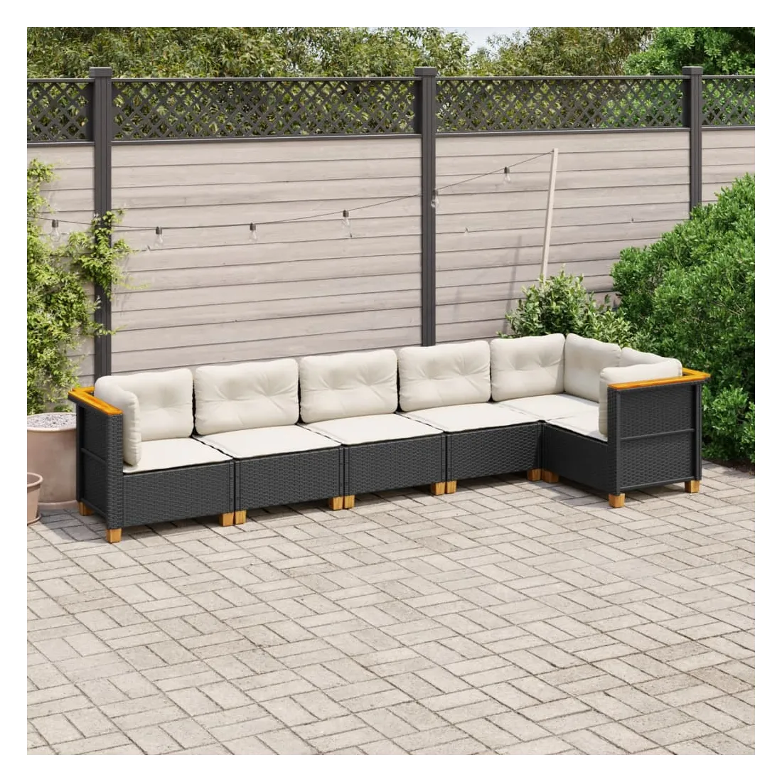 Salon de jardin 6 pcs avec coussins noir résine tressée