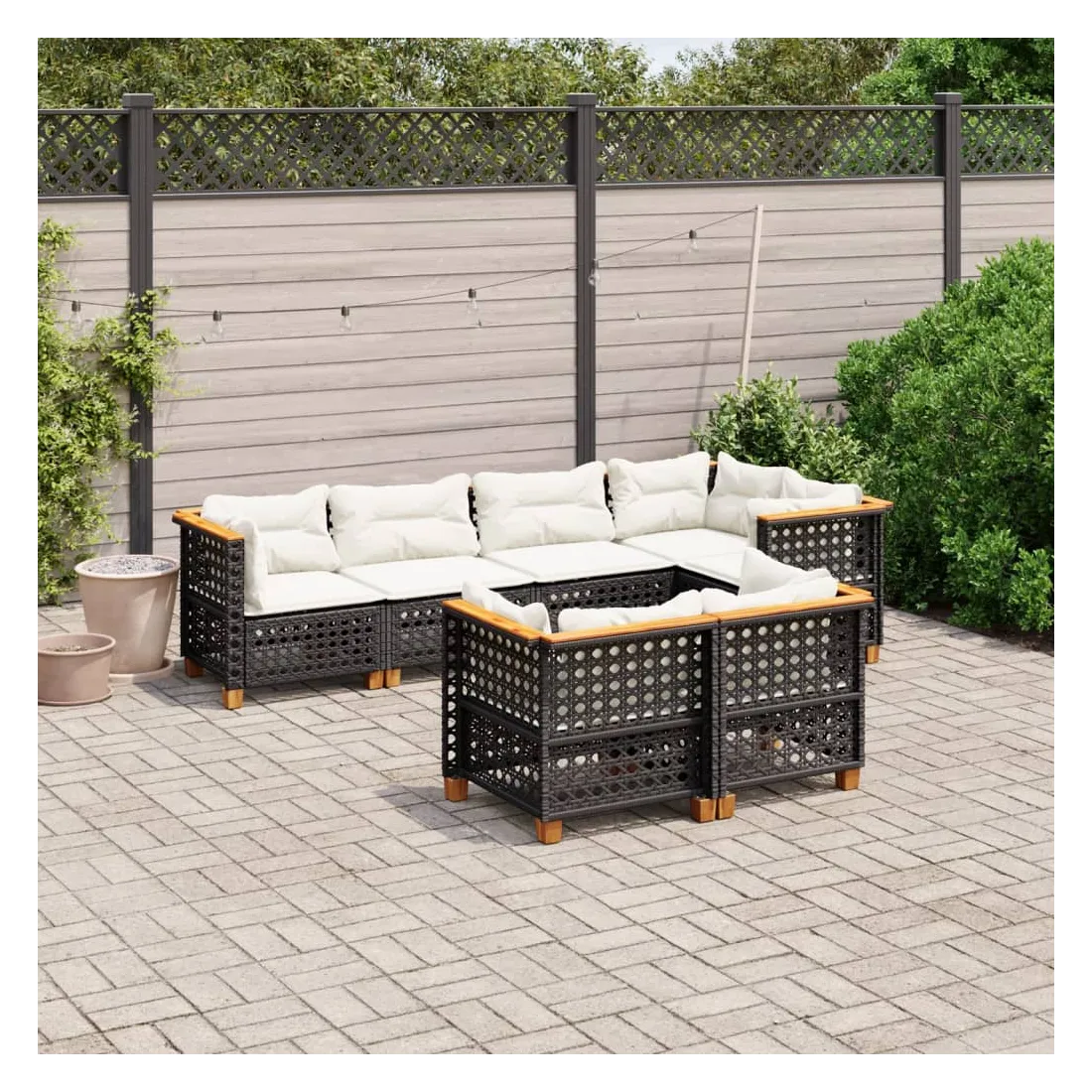 Cet ensemble de canapés de jardin est le complément parfait de votre arrière-cour, terrasse ou patio, offrant un espace confortable et accueillant pour discuter avec la famille et les amis ou simplement se détendre et profiter de l'extérieur. Matériau durable : la résine tressée, également connue sous le nom de poly rotin, est un matériau synthétique solide et nécessitant peu d'entretien qui ressemble au rotin naturel. Il est léger, facile à nettoyer et couramment utilisé pour les meubles d'extérieur en raison de sa durabilité et de ses propriétés de résistance aux intempéries.Expérience d'assise confortable : ce mobilier d'extérieur, doté de coussins épais, offre une expérience d'assise confortable.Housse amovible et lavable : ces coussins de siège sont dotés de housses amovibles pour un lavage et un entretien faciles.Conception modulaire : cet ensemble de meubles d'extérieur a une conception modulaire, ce qui le rend complètement flexible et facile à déplacer, afin que vous puissiez créer un agencement de meubles d'extérieur personnalisé. Bon à savoir :Pour que vos meubles d'extérieur restent beaux, nous vous recommandons de les protéger avec une housse imperméable.