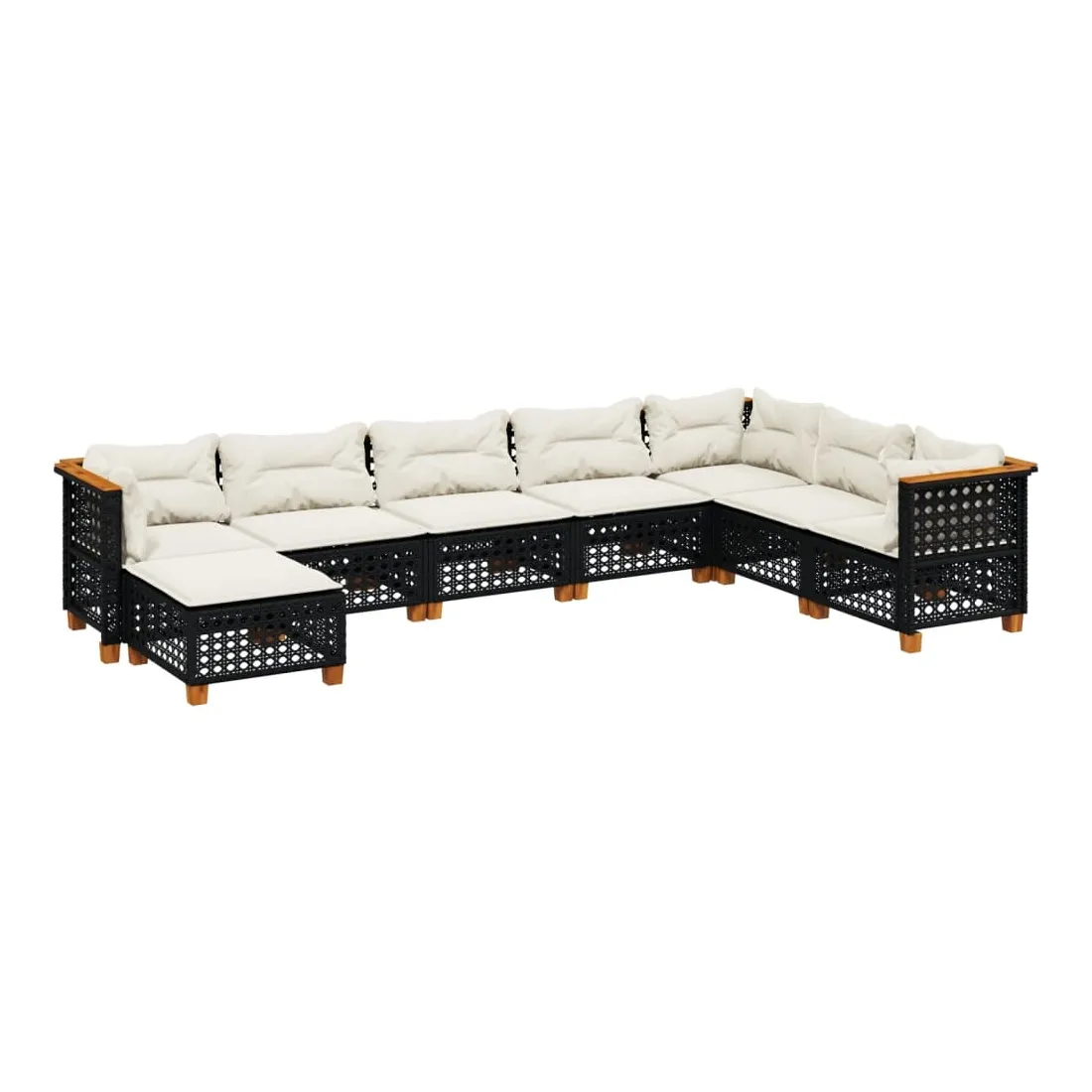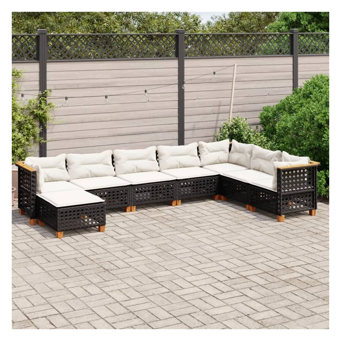 Cet ensemble de canapés de jardin est le complément parfait de votre arrière-cour, terrasse ou patio, offrant un espace confortable et accueillant pour discuter avec la famille et les amis ou simplement se détendre et profiter de l'extérieur. Matériau durable : la résine tressée, également connue sous le nom de poly rotin, est un matériau synthétique solide et nécessitant peu d'entretien qui ressemble au rotin naturel. Il est léger, facile à nettoyer et couramment utilisé pour les meubles d'extérieur en raison de sa durabilité et de ses propriétés de résistance aux intempéries.Expérience d'assise confortable : ce mobilier d'extérieur, doté de coussins épais, offre une expérience d'assise confortable.Housse amovible et lavable : ces coussins de siège sont dotés de housses amovibles pour un lavage et un entretien faciles.Conception modulaire : cet ensemble de meubles d'extérieur a une conception modulaire, ce qui le rend complètement flexible et facile à déplacer, afin que vous puissiez créer un agencement de meubles d'extérieur personnalisé. Bon à savoir :Pour que vos meubles d'extérieur restent beaux, nous vous recommandons de les protéger avec une housse imperméable.