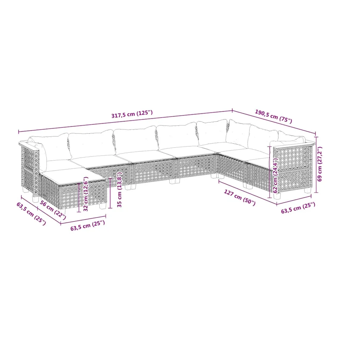 Cet ensemble de canapés de jardin est le complément parfait de votre arrière-cour, terrasse ou patio, offrant un espace confortable et accueillant pour discuter avec la famille et les amis ou simplement se détendre et profiter de l'extérieur. Matériau durable : la résine tressée, également connue sous le nom de poly rotin, est un matériau synthétique solide et nécessitant peu d'entretien qui ressemble au rotin naturel. Elle est légère, facile à nettoyer et couramment utilisée pour les meubles d'extérieur en raison de sa durabilité et de ses propriétés de résistance aux intempéries.Expérience d'assise confortable : ce mobilier d'extérieur, doté de coussins épais, offre une expérience d'assise confortable.Housse amovible et lavable : ces coussins de siège sont dotés de housses amovibles pour un lavage et un entretien faciles.Conception modulaire : cet ensemble de meubles d'extérieur a une conception modulaire, ce qui le rend complètement flexible et facile à déplacer, afin que vous puissiez créer un agencement de meubles d'extérieur personnalisé. Bon à savoir :Pour que vos meubles d'extérieur restent beaux, nous vous recommandons de les protéger avec une housse imperméable.