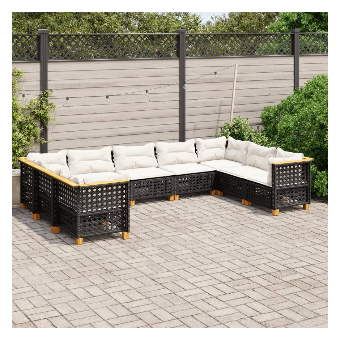 Cet ensemble de canapés de jardin est le complément parfait de votre arrière-cour, terrasse ou patio, offrant un espace confortable et accueillant pour discuter avec la famille et les amis ou simplement se détendre et profiter de l'extérieur. Matériau durable : la résine tressée, également connue sous le nom de poly rotin, est un matériau synthétique solide et nécessitant peu d'entretien qui ressemble au rotin naturel. Il est léger, facile à nettoyer et couramment utilisé pour les meubles d'extérieur en raison de sa durabilité et de ses propriétés de résistance aux intempéries.Expérience d'assise confortable : ce mobilier d'extérieur, doté de coussins épais, offre une expérience d'assise confortable.Housse amovible et lavable : ces coussins de siège sont dotés de housses amovibles pour un lavage et un entretien faciles.Conception modulaire : cet ensemble de meubles d'extérieur a une conception modulaire, ce qui le rend complètement flexible et facile à déplacer, afin que vous puissiez créer un agencement de meubles d'extérieur personnalisé. Bon à savoir :Pour que vos meubles d'extérieur restent beaux, nous vous recommandons de les protéger avec une housse imperméable.