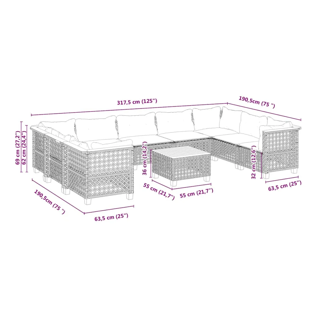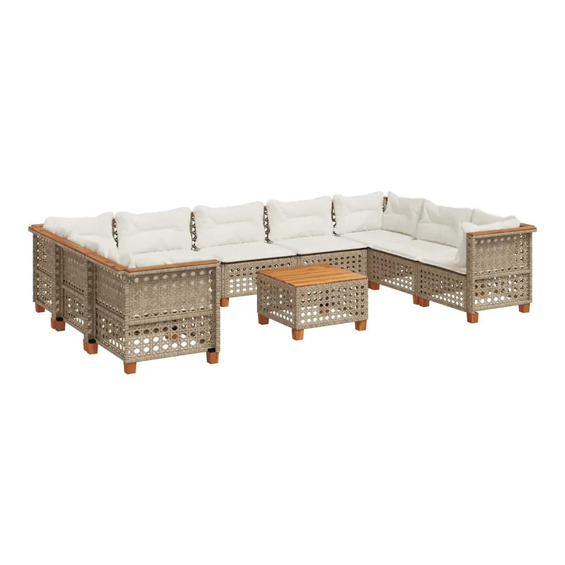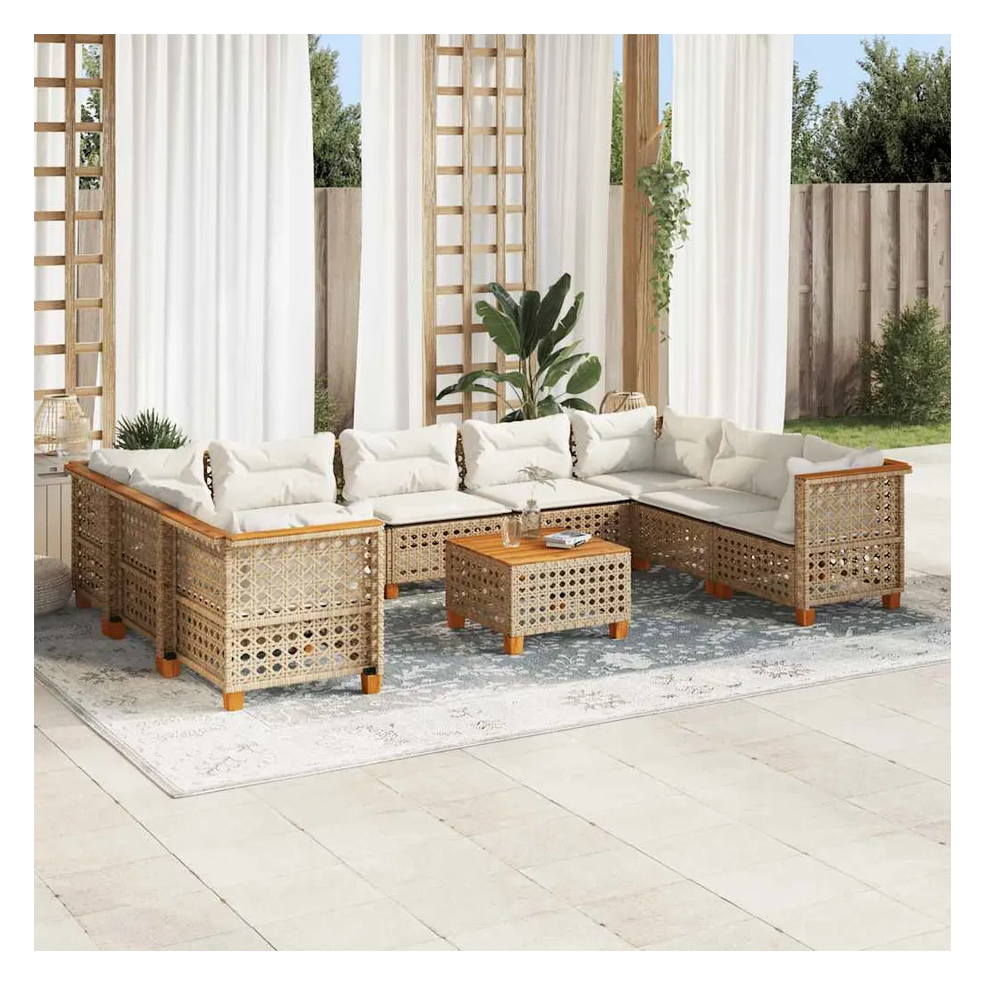 Salon de jardin avec coussins 10 pcs beige résine tressée