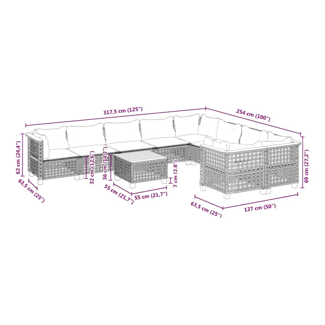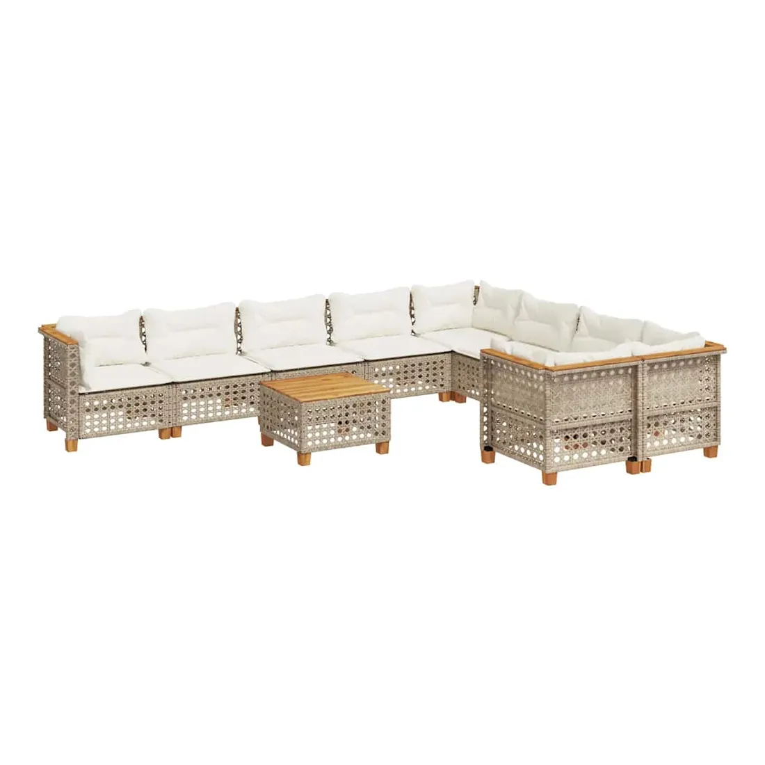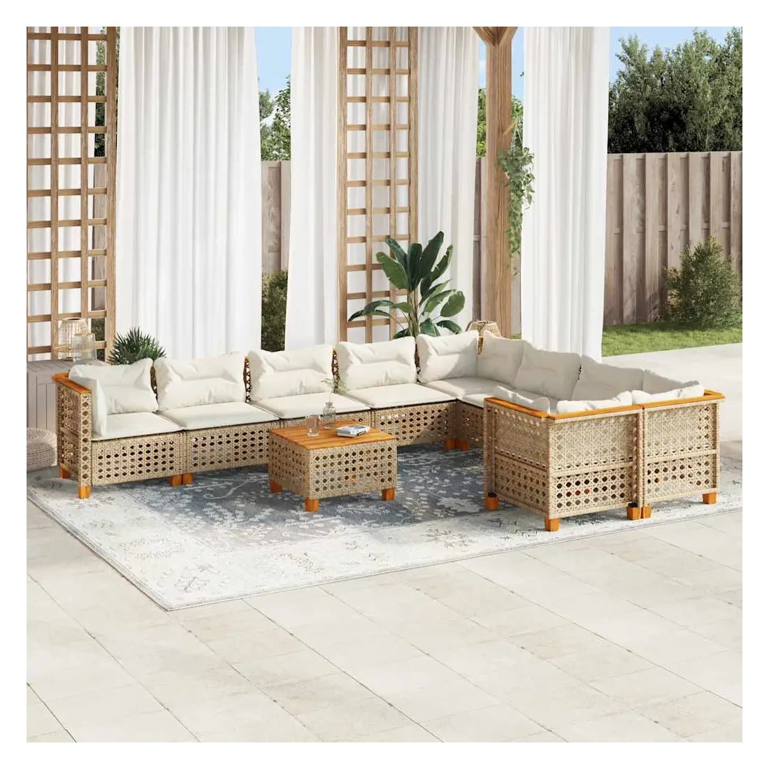 Cet ensemble de canapés de jardin est le complément parfait de votre arrière-cour, terrasse ou patio, offrant un espace confortable et accueillant pour discuter avec la famille et les amis ou simplement se détendre et profiter de l'extérieur. Matériau durable : la résine tressée, également connue sous le nom de poly rotin, est un matériau synthétique solide et nécessitant peu d'entretien qui ressemble au rotin naturel. Elle est légère, facile à nettoyer et couramment utilisée pour les meubles d'extérieur en raison de sa durabilité et de ses propriétés de résistance aux intempéries.Expérience d'assise confortable : ce mobilier d'extérieur, doté de coussins épais, offre une expérience d'assise confortable.Housse amovible et lavable : ces coussins de siège sont dotés de housses amovibles pour un lavage et un entretien faciles.Dessus stable et facile à nettoyer : cette table de jardin a un dessus en bois d'acacia robuste, durable et facile à nettoyer avec un chiffon humide.Conception modulaire : cet ensemble de meubles d'extérieur a une conception modulaire, ce qui le rend complètement flexible et facile à déplacer, afin que vous puissiez créer un agencement de meubles d'extérieur personnalisé. Bon à savoir :Pour que vos meubles d'extérieur restent beaux, nous vous recommandons de les protéger avec une housse imperméable.