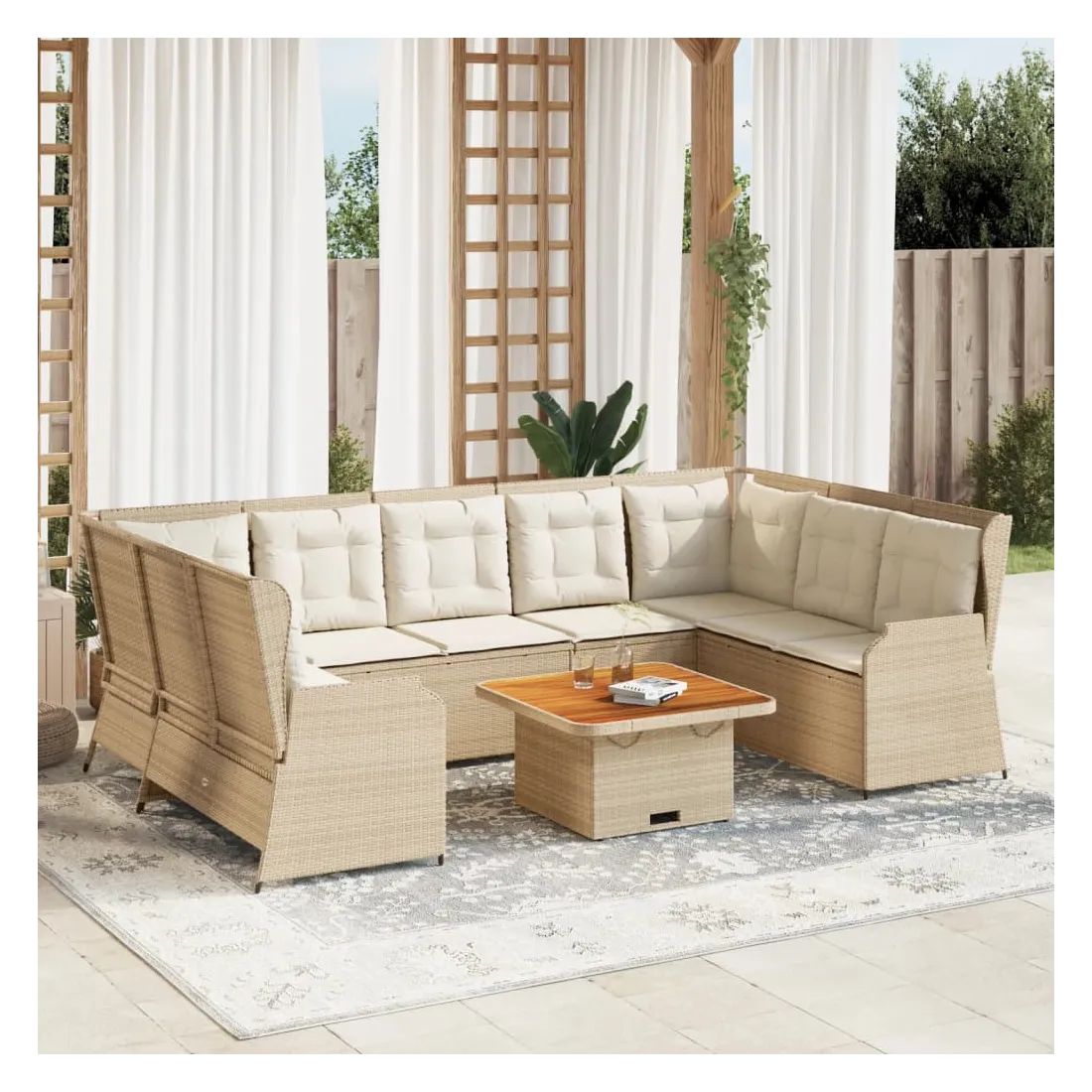 Cet ensemble de salon de jardin est le complément parfait de votre arrière-cour, terrasse ou patio, offrant un espace confortable et accueillant pour discuter avec la famille et les amis ou simplement se détendre et profiter de l'extérieur. Matériau durable : la résine tressée, également connue sous le nom de poly rotin, est un matériau synthétique solide et nécessitant peu d'entretien qui ressemble au rotin naturel. Elle est légère, facile à nettoyer et couramment utilisée pour les meubles d'extérieur en raison de sa durabilité et de ses propriétés de résistance aux intempéries.Dossier réglable : vous pouvez régler le dossier dans n'importe quelle position en tirant sur la poignée et le remettre rapidement dans sa position initiale.Housse amovible et lavable : ces coussins de siège sont dotés de housses amovibles pour un lavage et un entretien faciles.Expérience d'assise confortable : ce mobilier d'extérieur, doté de coussins épais, offre une expérience d'assise confortable.Dessus stable et facile à nettoyer : cette table de jardin a un dessus en bois d'acacia robuste, durable et facile à nettoyer avec un chiffon humide.Cadre robuste et stable : le cadre en acier enduit de poudre est solide, stable, durable et résistant à la corrosion et aux intempéries, ce qui garantit des performances durables. Bon à savoir :Pour que vos meubles d'extérieur restent beaux, nous vous recommandons de les protéger avec une housse imperméable.