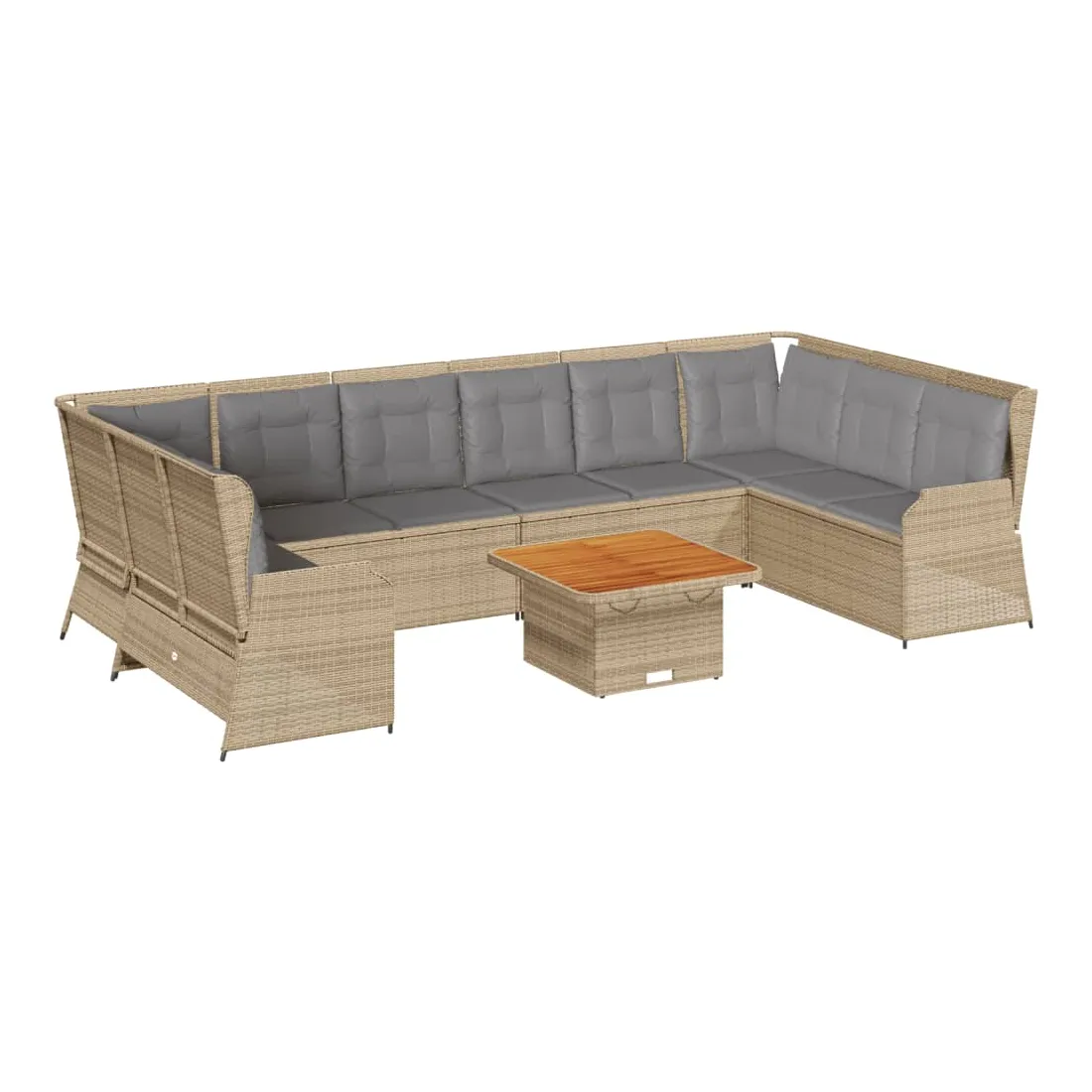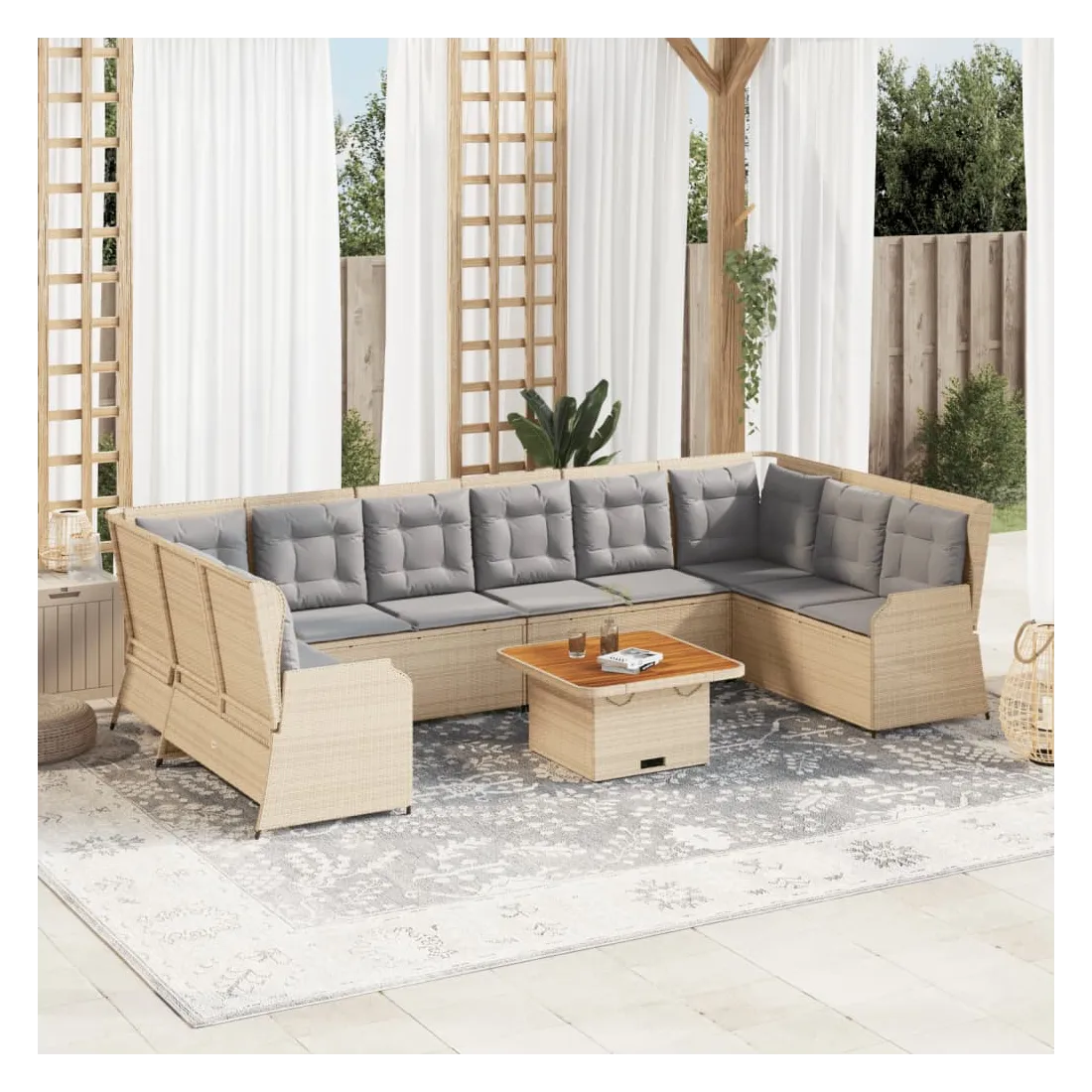 Cet ensemble de salon de jardin est le complément parfait de votre arrière-cour, terrasse ou patio, offrant un espace confortable et accueillant pour discuter avec la famille et les amis ou simplement se détendre et profiter de l'extérieur. Matériau durable : la résine tressée, également connue sous le nom de poly rotin, est un matériau synthétique solide et nécessitant peu d'entretien qui ressemble au rotin naturel. Elle est légère, facile à nettoyer et couramment utilisée pour les meubles d'extérieur en raison de sa durabilité et de ses propriétés de résistance aux intempéries.Dossier réglable : vous pouvez régler le dossier dans n'importe quelle position en tirant sur la poignée et le remettre rapidement dans sa position initiale.Housse amovible et lavable : ces coussins de siège sont dotés de housses amovibles pour un lavage et un entretien faciles.Expérience d'assise confortable : ce mobilier d'extérieur, doté de coussins épais, offre une expérience d'assise confortable.Dessus stable et facile à nettoyer : cette table de jardin a un dessus en bois d'acacia robuste, durable et facile à nettoyer avec un chiffon humide.Cadre robuste et stable : le cadre en acier enduit de poudre est solide, stable, durable et résistant à la corrosion et aux intempéries, ce qui garantit des performances durables. Bon à savoir :Pour que vos meubles d'extérieur restent beaux, nous vous recommandons de les protéger avec une housse imperméable.