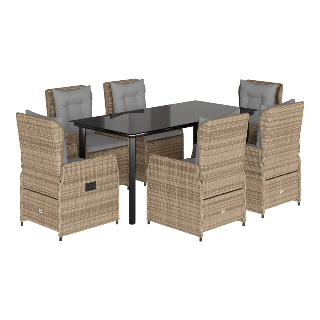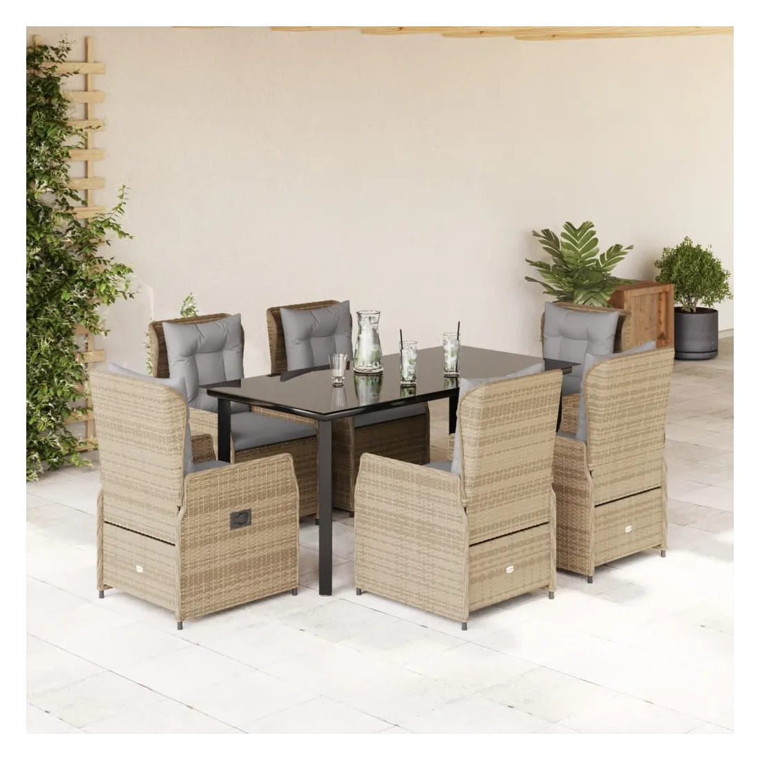 Ensemble à manger de jardin et coussins 7 pcs beige poly rotin