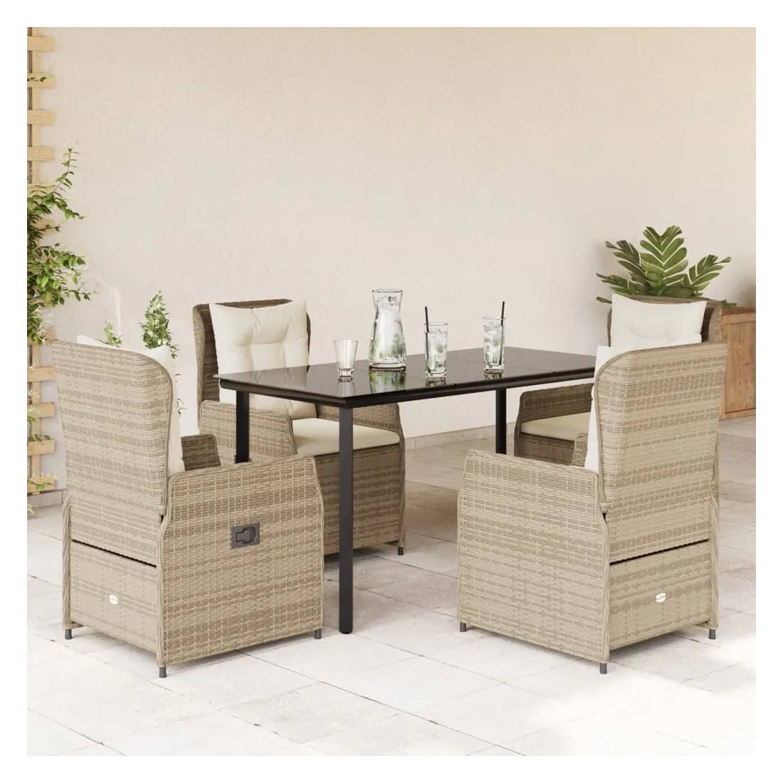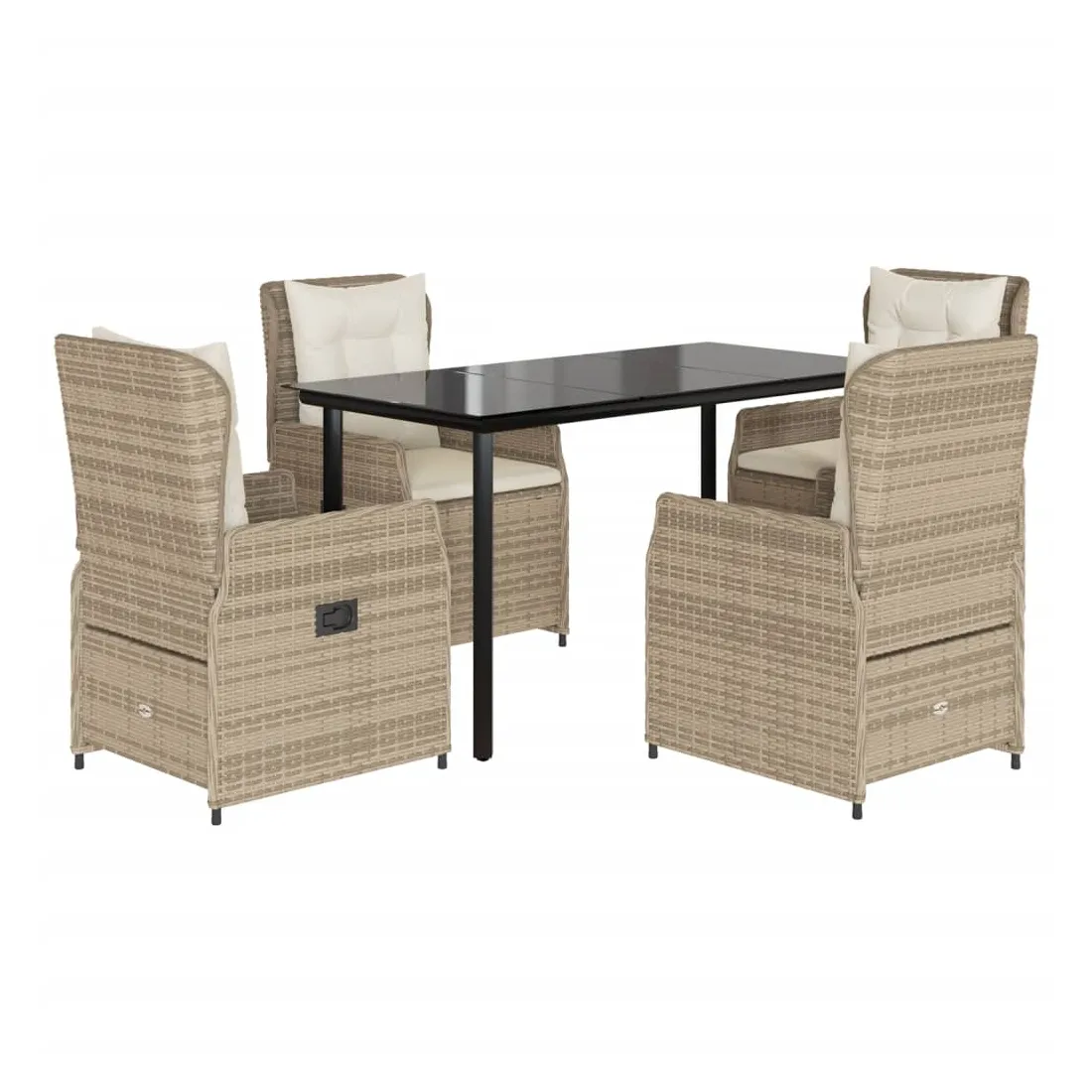 Ensemble à manger de jardin avec coussins 5pcs Beige poly rotin