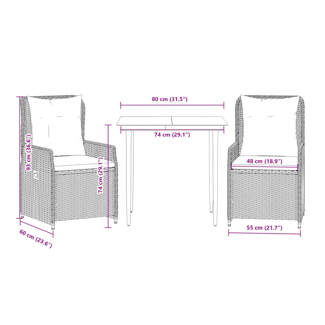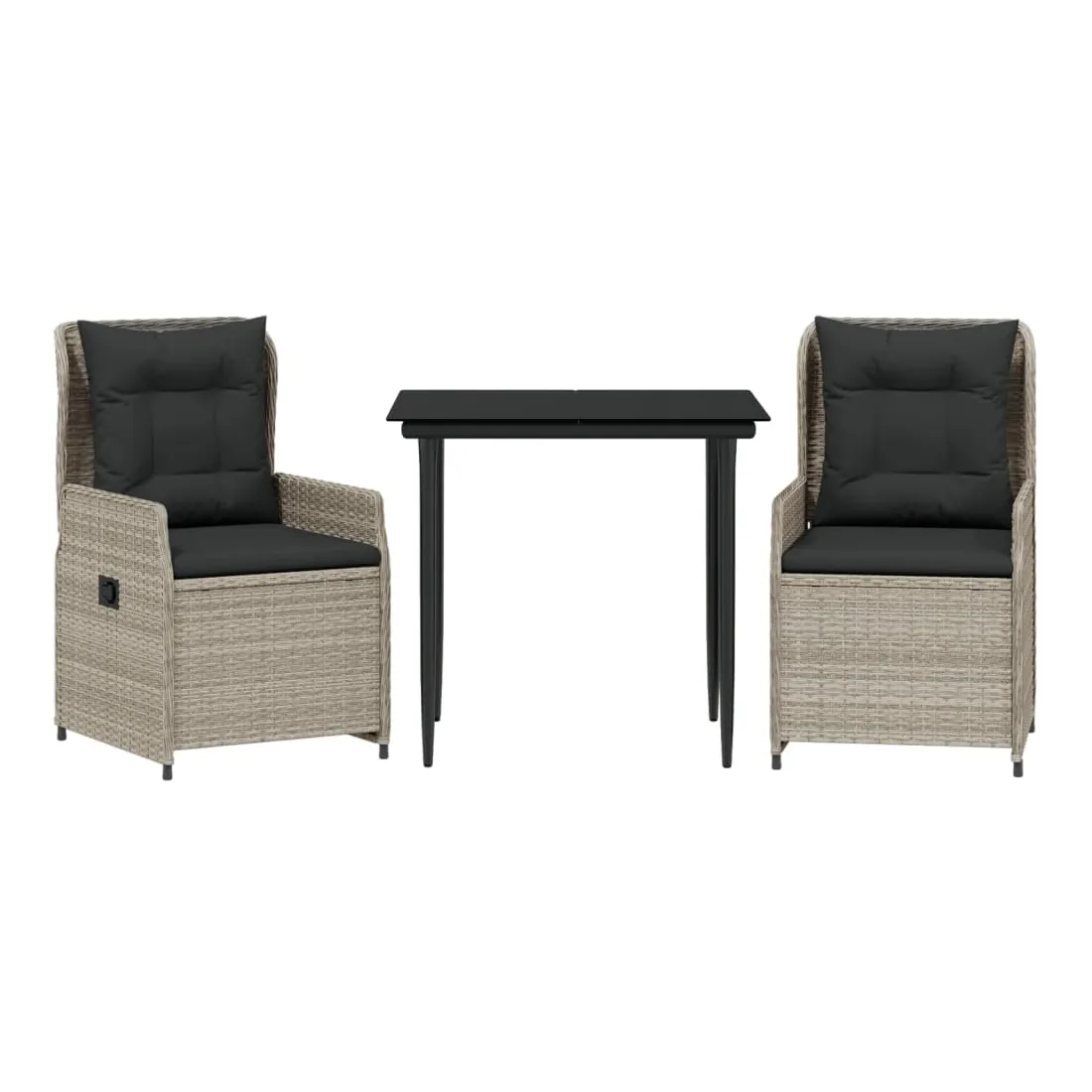 Ensemble à manger de jardin 3pcs coussins gris clair poly rotin