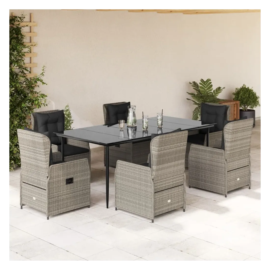 vidaXLCet ensemble de salle à manger de jardin est un excellent choix pour les repas en plein air ou pour vous détendre dans le jardin, dans l'arrière-cour ou sur la terrasse. Matériau durable : la résine tressée, également connue sous le nom de poly rotin, est un matériau synthétique solide et nécessitant peu d'entretien qui ressemble au rotin naturel. Il est léger, facile à nettoyer et couramment utilisé pour les meubles d'extérieur en raison de sa durabilité et de ses propriétés de résistance aux intempéries.Dossier réglable : ce siège de jardin est doté d'une poignée. Vous pouvez régler le dossier dans n'importe quelle position en tirant sur la poignée et le remettre rapidement dans sa position initiale.Expérience d'assise confortable : ce mobilier d'extérieur, doté de coussins épais, offre une expérience d'assise confortable.Housse amovible et lavable : le coussin de siège est doté d'une housse amovible pour un lavage et un entretien faciles.Dessus en verre : le dessus de la table d'extérieur est fabriqué en verre trempé solide et durable, ce qui le rend facile à nettoyer avec un chiffon humide et ajoute une touche d'élégance à votre espace extérieur. Bon à savoir :Pour que vos meubles d'extérieur restent beaux, nous vous recommandons de les protéger avec une housse imperméable.
