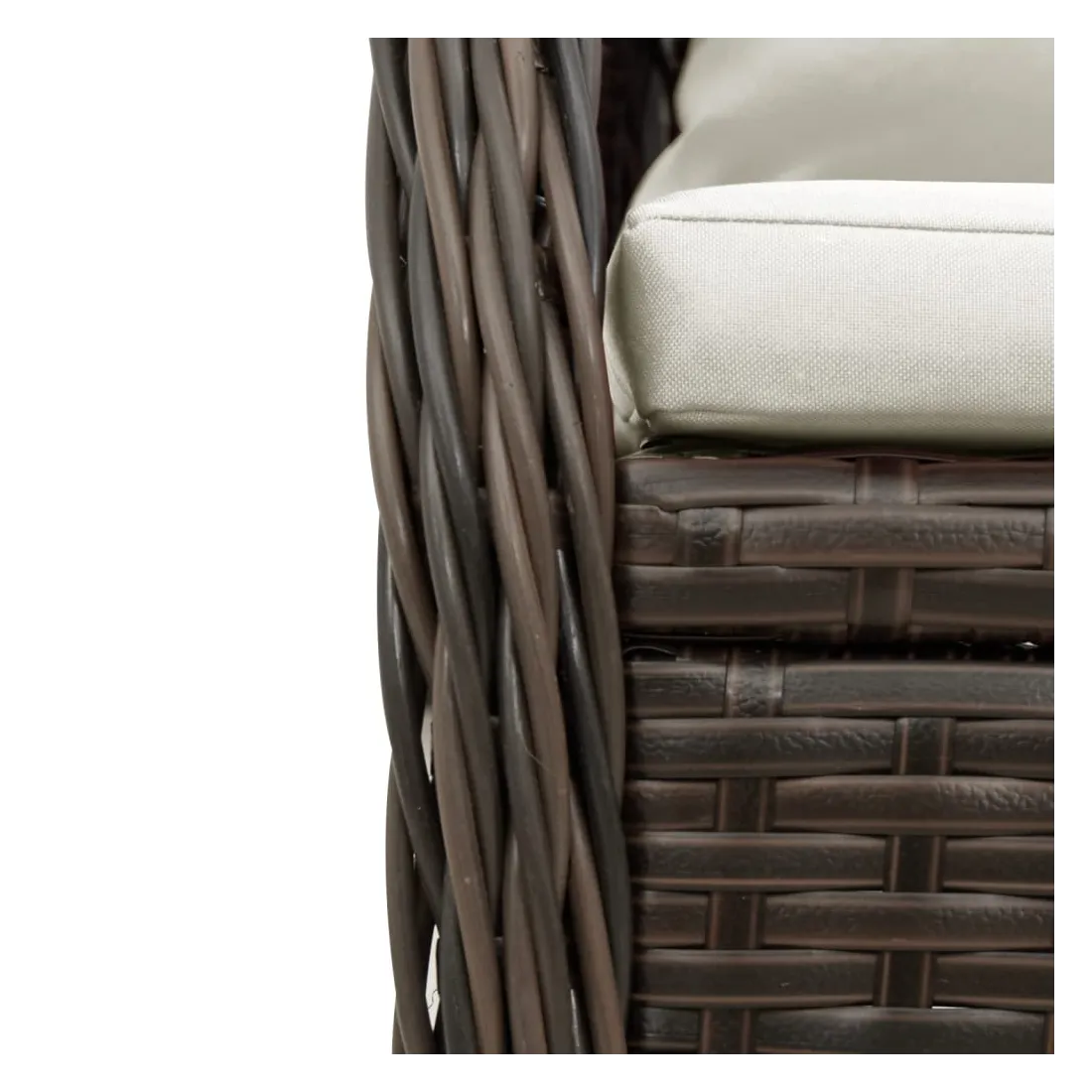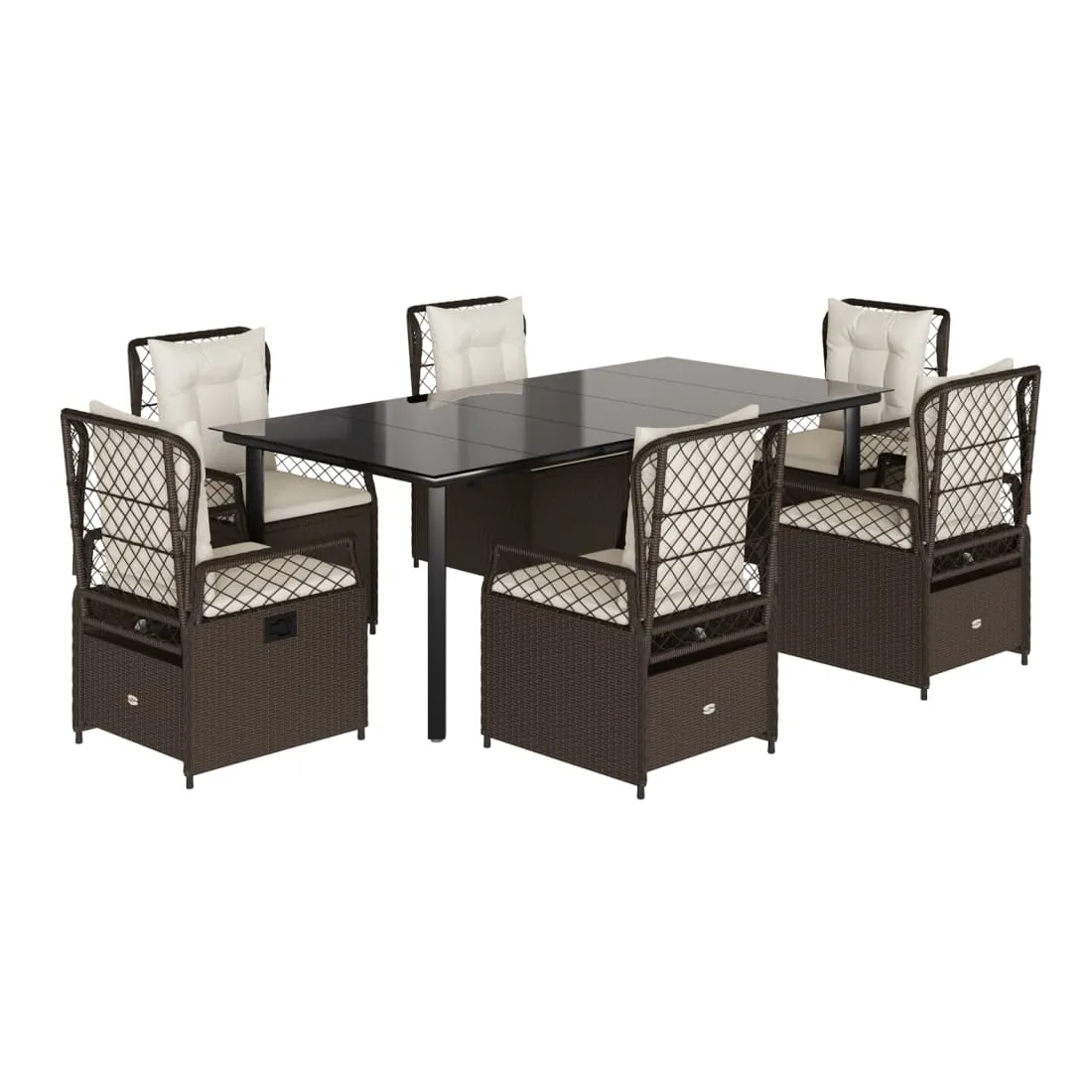 Cet ensemble de salle à manger de jardin est un excellent choix pour les repas en plein air ou pour vous détendre dans le jardin, dans l'arrière-cour ou sur la terrasse. Matériau durable : la résine tressée, également connue sous le nom de poly rotin, est un matériau synthétique solide et nécessitant peu d'entretien qui ressemble au rotin naturel. Il est léger, facile à nettoyer et couramment utilisé pour les meubles d'extérieur en raison de sa durabilité et de ses propriétés de résistance aux intempéries.Dossier réglable : ce siège de jardin est doté d'une poignée. Vous pouvez régler le dossier dans n'importe quelle position en tirant sur la poignée et le remettre rapidement dans sa position initiale.Expérience d'assise confortable : ce mobilier d'extérieur, doté de coussins épais, offre une expérience d'assise confortable.Housse amovible et lavable : le coussin de siège est doté d'une housse amovible pour un lavage et un entretien faciles.Dessus en verre : le dessus de la table d'extérieur est fabriqué en verre trempé solide et durable, ce qui le rend facile à nettoyer avec un chiffon humide et ajoute une touche d'élégance à votre espace extérieur. Bon à savoir :Pour que vos meubles d'extérieur restent beaux, nous vous recommandons de les protéger avec une housse imperméable.