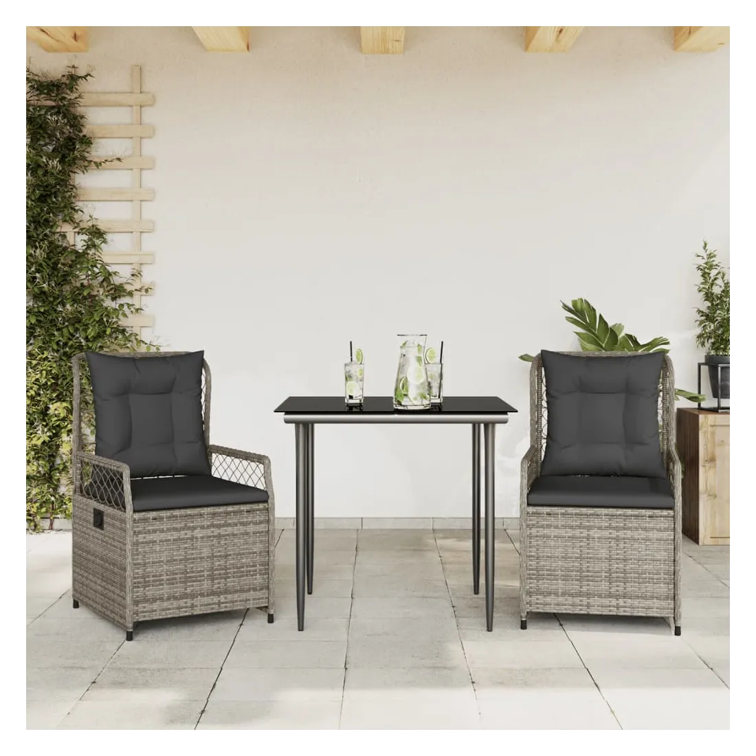 Cet ensemble de salle à manger de jardin est un excellent choix pour les repas en plein air ou pour vous détendre dans le jardin, dans l'arrière-cour ou sur la terrasse. Matériau durable : la résine tressée, également connue sous le nom de poly rotin, est un matériau synthétique solide et nécessitant peu d'entretien qui ressemble au rotin naturel. Il est léger, facile à nettoyer et couramment utilisé pour les meubles d'extérieur en raison de sa durabilité et de ses propriétés de résistance aux intempéries.Dossier réglable : ce siège de jardin est doté d'une poignée. Vous pouvez régler le dossier dans n'importe quelle position en tirant sur la poignée et le remettre rapidement dans sa position initiale.Expérience d'assise confortable : ce mobilier d'extérieur, doté de coussins épais, offre une expérience d'assise confortable.Housse amovible et lavable : le coussin de siège est doté d'une housse amovible pour un lavage et un entretien faciles.Dessus en verre : le dessus de la table d'extérieur est fabriqué en verre trempé solide et durable, ce qui le rend facile à nettoyer avec un chiffon humide et ajoute une touche d'élégance à votre espace extérieur. Bon à savoir :Pour que vos meubles d'extérieur restent beaux, nous vous recommandons de les protéger avec une housse imperméable.