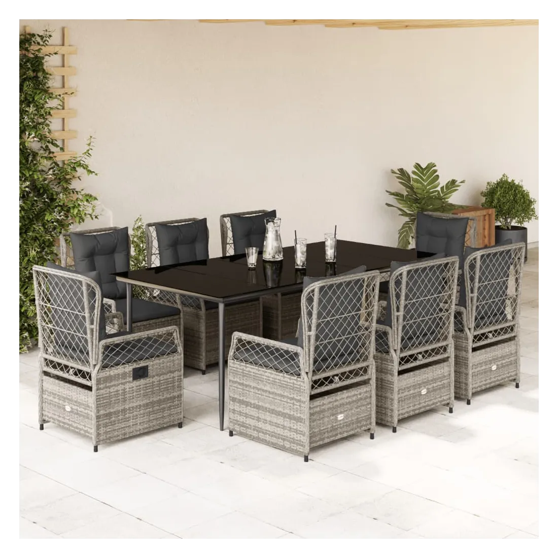 Ensemble à manger de jardin 9 pcs coussins gris résine tressée