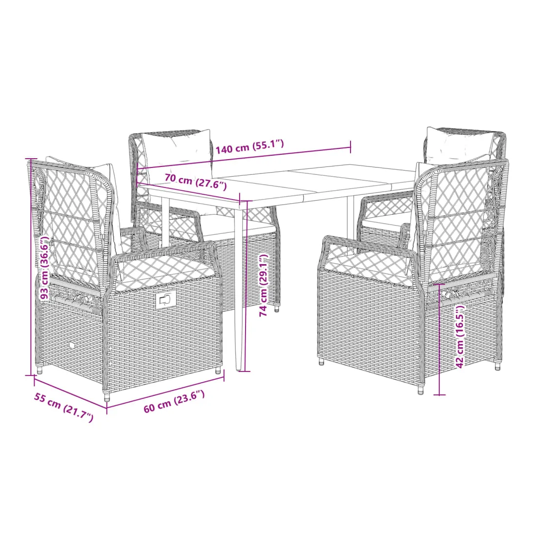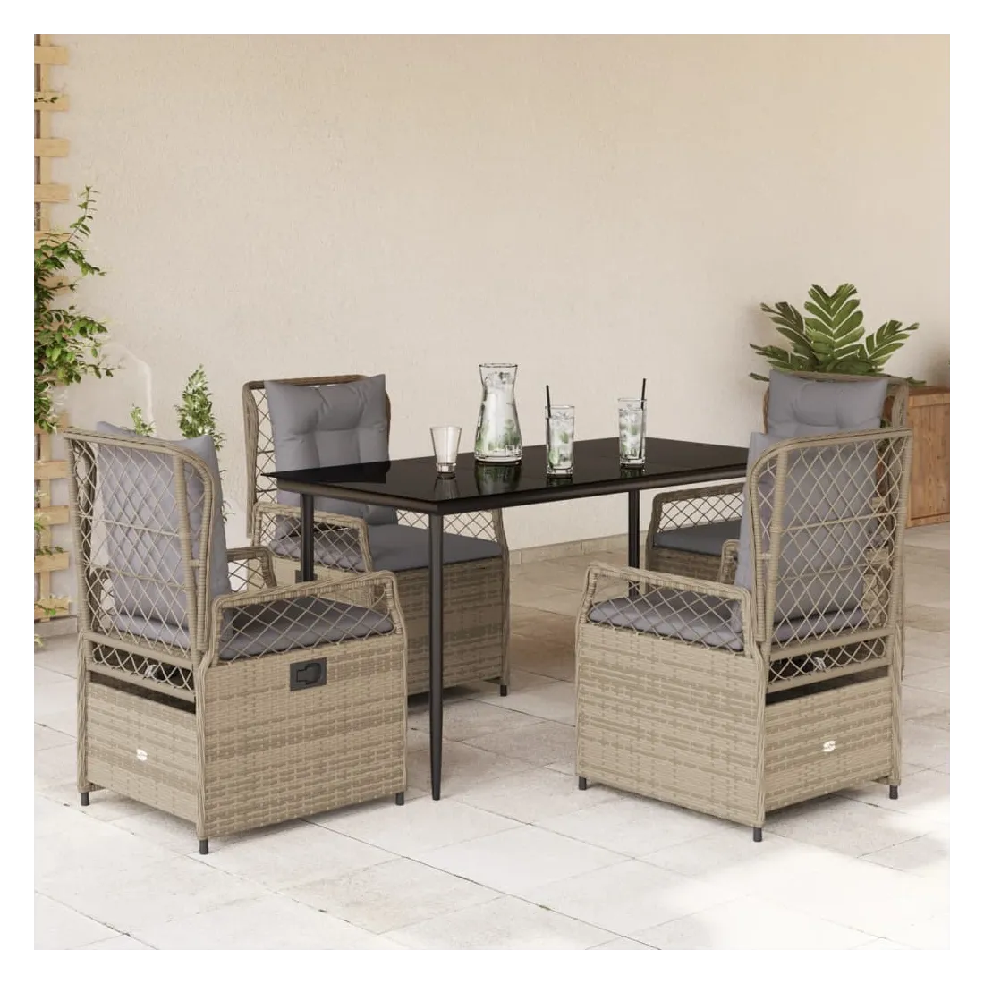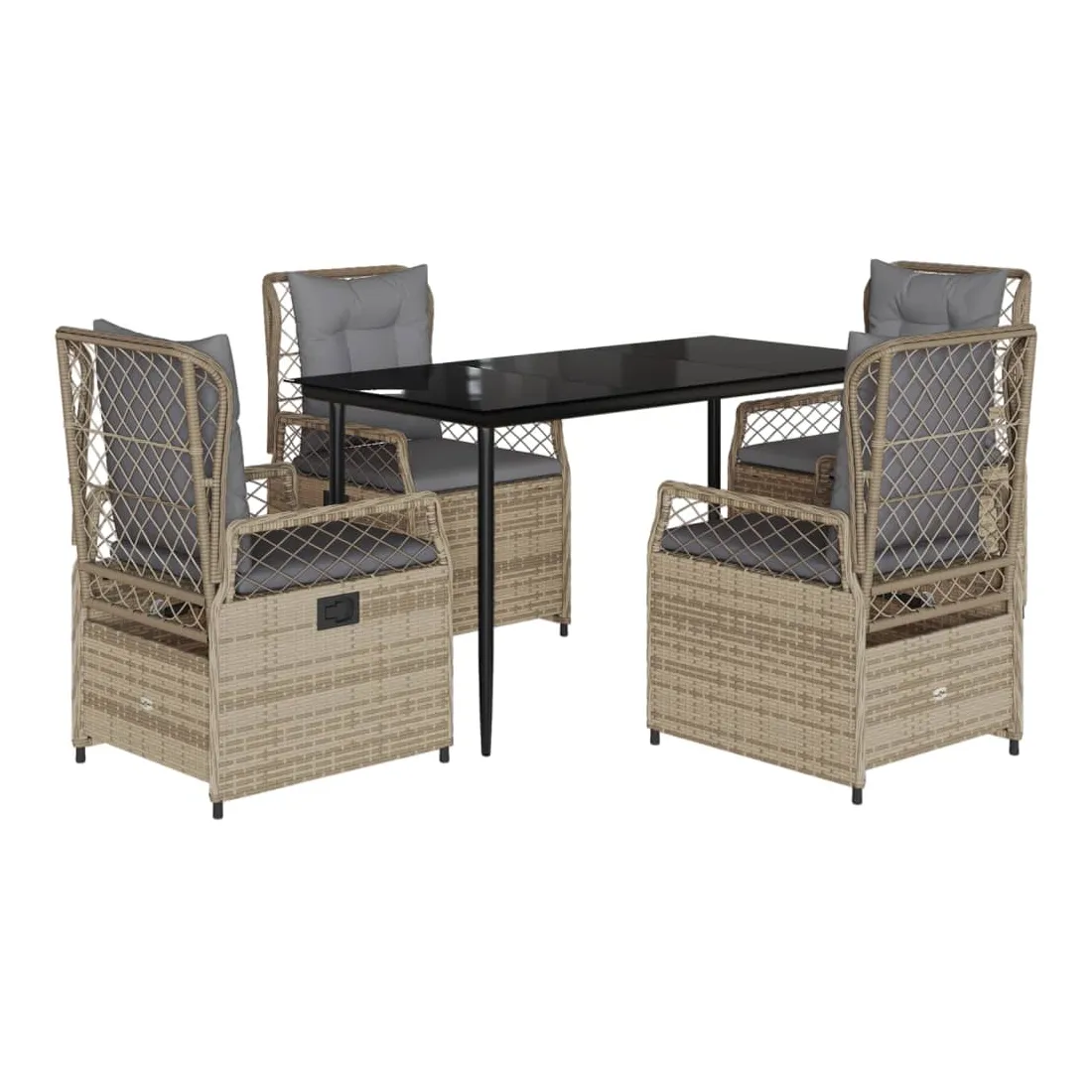 Ensemble à manger de jardin avec coussins 5pcs Beige poly rotin
