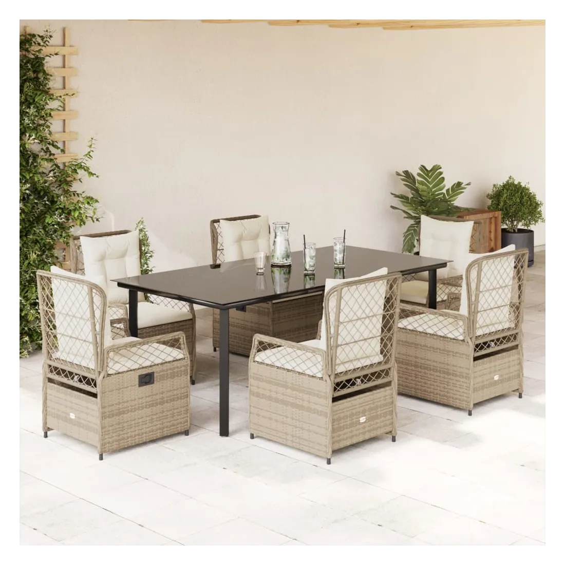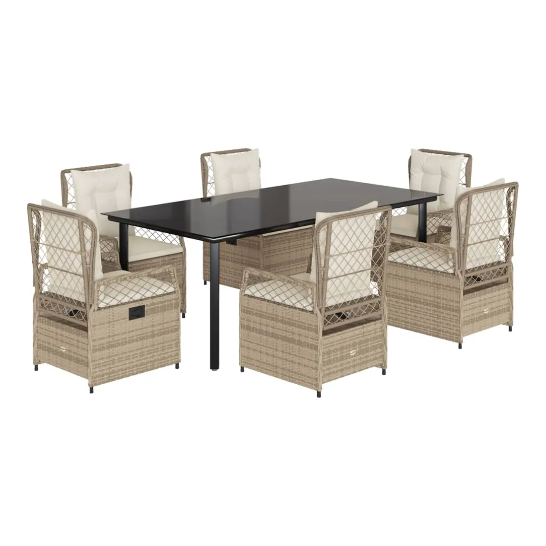 Ensemble à manger de jardin et coussins 7 pcs beige poly rotin