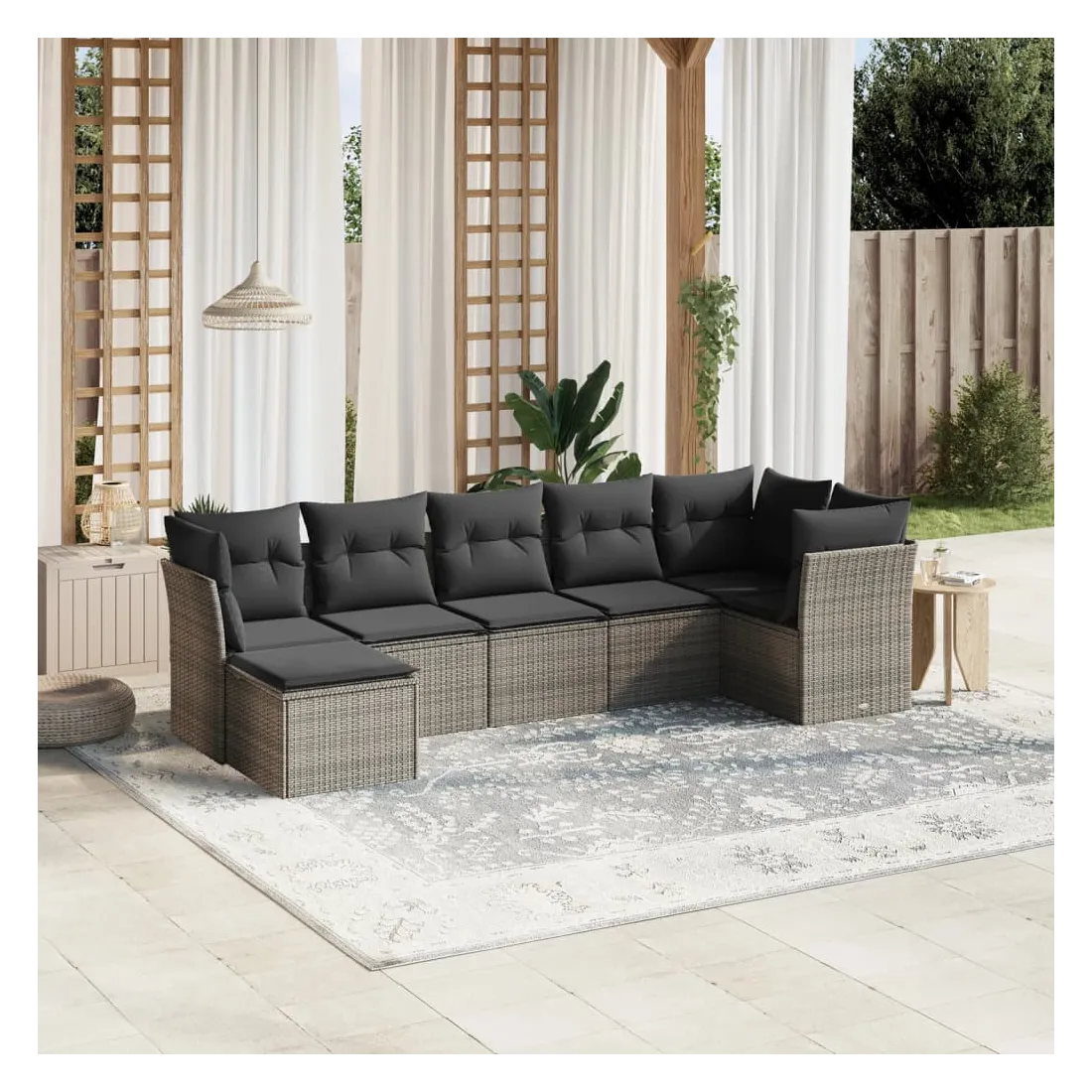 Cet ensemble de canapés de jardin est le complément parfait de votre arrière-cour, terrasse ou patio, offrant un espace confortable et accueillant pour discuter avec la famille et les amis ou simplement se détendre et profiter de l'extérieur. Matériau durable : la résine tressée, également connue sous le nom de poly rotin, est un matériau synthétique solide et nécessitant peu d'entretien qui ressemble au rotin naturel. Il est léger, facile à nettoyer et couramment utilisé pour les meubles d'extérieur en raison de sa durabilité et de ses propriétés de résistance aux intempéries.Expérience d'assise confortable : ce mobilier d'extérieur, doté de coussins épais, offre une expérience d'assise confortable.Housse amovible et lavable : ces coussins de siège sont dotés de housses amovibles pour un lavage et un entretien faciles.Cadre robuste et stable : le cadre en acier enduit de poudre assure la solidité et la stabilité du meuble de jardin pour une utilisation quotidienne à l'extérieur.Conception modulaire : cet ensemble de meubles d'extérieur a une conception modulaire, ce qui le rend complètement flexible et facile à déplacer, afin que vous puissiez créer un agencement de meubles d'extérieur personnalisé. Bon à savoir :Pour que vos meubles d'extérieur restent beaux, nous vous recommandons de les protéger avec une housse imperméable.