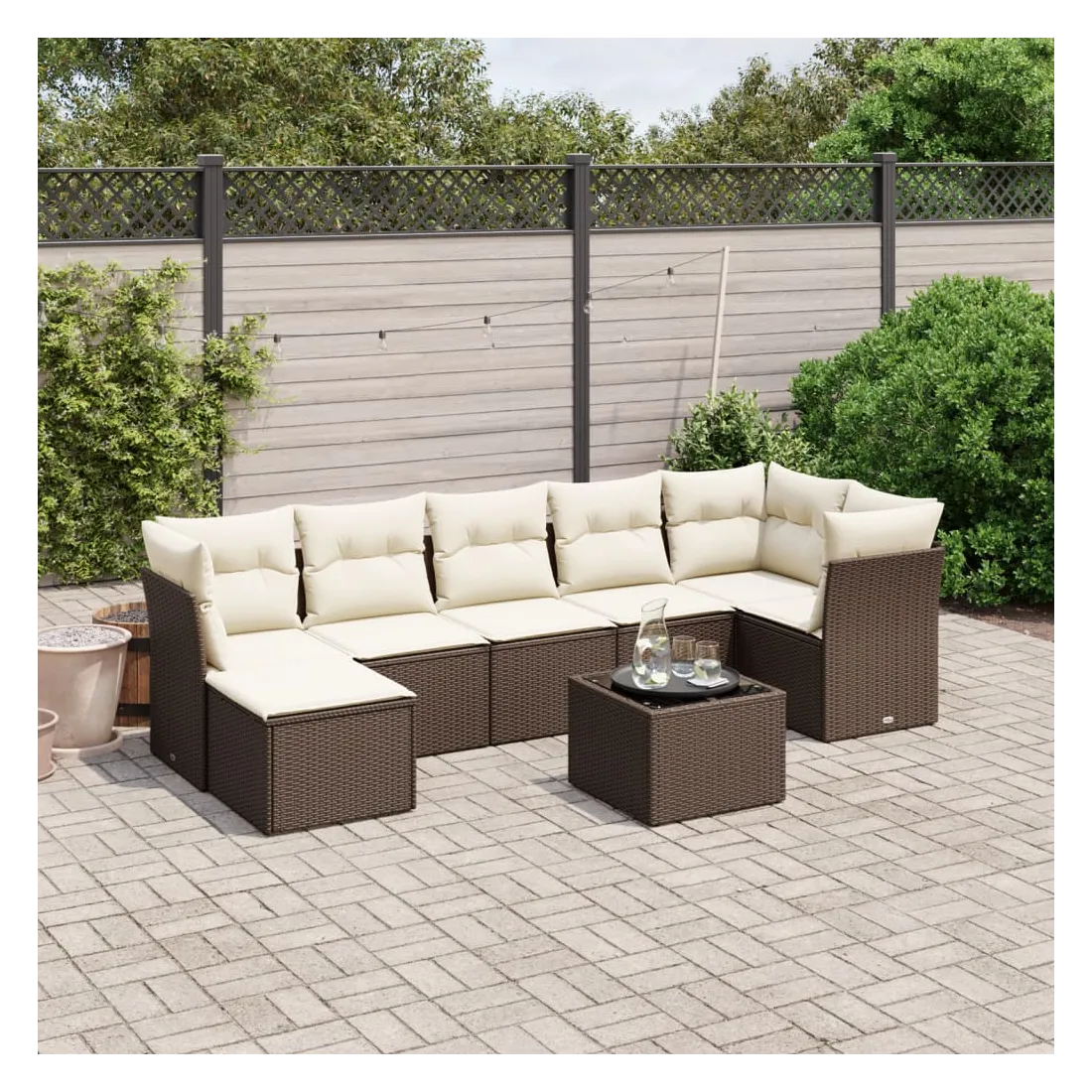 Cet ensemble de canapés de jardin est le complément parfait de votre arrière-cour, terrasse ou patio, offrant un espace confortable et accueillant pour discuter avec la famille et les amis ou simplement se détendre et profiter de l'extérieur. Matériau durable : la résine tressée, également connue sous le nom de poly rotin, est un matériau synthétique solide et nécessitant peu d'entretien qui ressemble au rotin naturel. Il est léger, facile à nettoyer et couramment utilisé pour les meubles d'extérieur en raison de sa durabilité et de ses propriétés de résistance aux intempéries.Dessus en verre : le dessus de la table d'extérieur est fabriqué en verre trempé solide et durable, ce qui le rend facile à nettoyer avec un chiffon humide et ajoute une touche d'élégance à votre espace extérieur.Housse amovible et lavable : ces coussins de siège sont dotés de housses amovibles pour un lavage et un entretien faciles.Cadre robuste et stable : le cadre en acier enduit de poudre assure la solidité et la stabilité du meuble de jardin pour une utilisation quotidienne à l'extérieur.Conception modulaire : cet ensemble de meubles d'extérieur a une conception modulaire, ce qui le rend complètement flexible et facile à déplacer, afin que vous puissiez créer un agencement de meubles d'extérieur personnalisé. Bon à savoir :Pour que vos meubles d'extérieur restent beaux, nous vous recommandons de les protéger avec une housse imperméable.