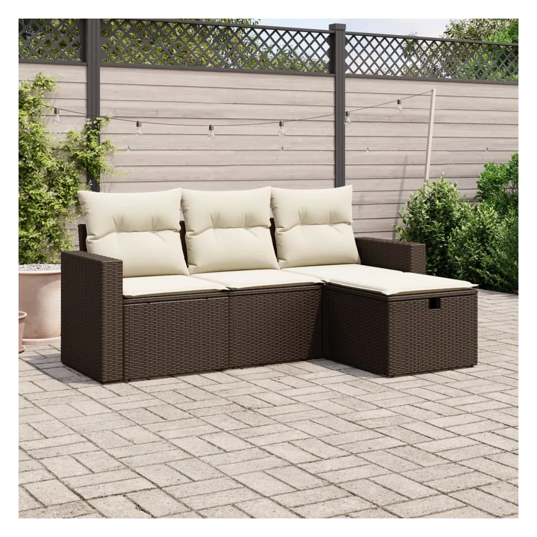 Cet ensemble de canapés de jardin est le complément parfait de votre arrière-cour, terrasse ou patio, offrant un espace confortable et accueillant pour discuter avec la famille et les amis ou simplement se détendre et profiter de l'extérieur. Matériau durable : la résine tressée, également connue sous le nom de poly rotin, est un matériau synthétique solide et nécessitant peu d'entretien qui ressemble au rotin naturel. Il est léger, facile à nettoyer et couramment utilisé pour les meubles d'extérieur en raison de sa durabilité et de ses propriétés de résistance aux intempéries.Expérience d'assise confortable : ce mobilier d'extérieur, doté de coussins épais, offre une expérience d'assise confortable.Housse amovible et lavable : ces coussins de siège sont dotés de housses amovibles pour un lavage et un entretien faciles.Cadre robuste et stable : le cadre en acier enduit de poudre assure la solidité et la stabilité du meuble de jardin pour une utilisation quotidienne à l'extérieur.Conception modulaire : cet ensemble de meubles d'extérieur a une conception modulaire, ce qui le rend complètement flexible et facile à déplacer, afin que vous puissiez créer un agencement de meubles d'extérieur personnalisé. Bon à savoir :Pour que vos meubles d'extérieur restent beaux, nous vous recommandons de les protéger avec une housse imperméable.