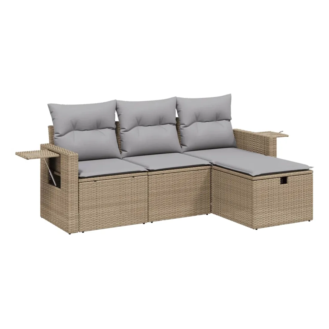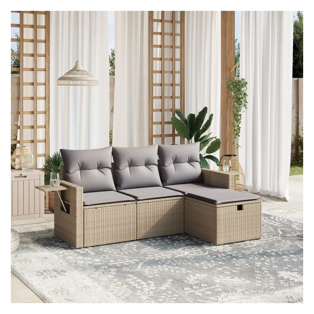 Cet ensemble de canapés de jardin est le complément parfait de votre arrière-cour, terrasse ou patio, offrant un espace confortable et accueillant pour discuter avec la famille et les amis ou simplement se détendre et profiter de l'extérieur. Matériau durable : la résine tressée, également connue sous le nom de poly rotin, est un matériau synthétique solide et nécessitant peu d'entretien qui ressemble au rotin naturel. Il est léger, facile à nettoyer et couramment utilisé pour les meubles d'extérieur en raison de sa durabilité et de ses propriétés de résistance aux intempéries.Expérience d'assise confortable : ce mobilier d'extérieur, doté de coussins épais, offre une expérience d'assise confortable.Housse amovible et lavable : ces coussins de siège sont dotés de housses amovibles pour un lavage et un entretien faciles.Cadre robuste et stable : le cadre en acier enduit de poudre assure la solidité et la stabilité du meuble de jardin pour une utilisation quotidienne à l'extérieur.Conception modulaire : cet ensemble de meubles d'extérieur a une conception modulaire, ce qui le rend complètement flexible et facile à déplacer, afin que vous puissiez créer un agencement de meubles d'extérieur personnalisé. Bon à savoir :Pour que vos meubles d'extérieur restent beaux, nous vous recommandons de les protéger avec une housse imperméable.