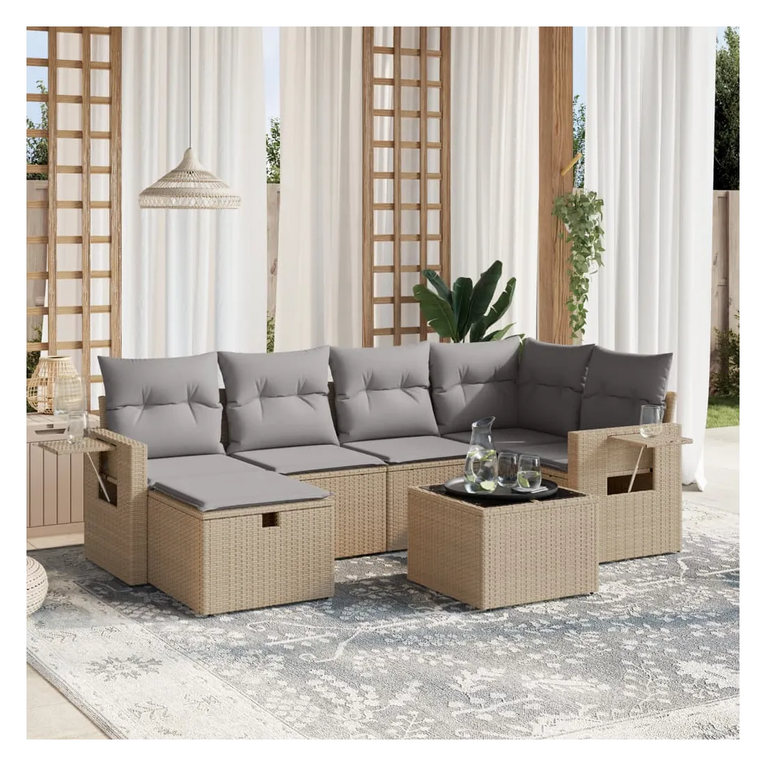Cet ensemble de canapés de jardin est le complément parfait de votre arrière-cour, terrasse ou patio, offrant un espace confortable et accueillant pour discuter avec la famille et les amis ou simplement se détendre et profiter de l'extérieur. Matériau durable : la résine tressée, également connue sous le nom de poly rotin, est un matériau synthétique solide et nécessitant peu d'entretien qui ressemble au rotin naturel. Il est léger, facile à nettoyer et couramment utilisé pour les meubles d'extérieur en raison de sa durabilité et de ses propriétés de résistance aux intempéries.Dessus en verre : le dessus de la table d'extérieur est fabriqué en verre trempé solide et durable, ce qui le rend facile à nettoyer avec un chiffon humide et ajoute une touche d'élégance à votre espace extérieur.Housse amovible et lavable : ces coussins de siège sont dotés de housses amovibles pour un lavage et un entretien faciles.Cadre robuste et stable : le cadre en acier enduit de poudre assure la solidité et la stabilité du meuble de jardin pour une utilisation quotidienne à l'extérieur.Conception modulaire : cet ensemble de meubles d'extérieur a une conception modulaire, ce qui le rend complètement flexible et facile à déplacer, afin que vous puissiez créer un agencement de meubles d'extérieur personnalisé. Bon à savoir :Pour que vos meubles d'extérieur restent beaux, nous vous recommandons de les protéger avec une housse imperméable.