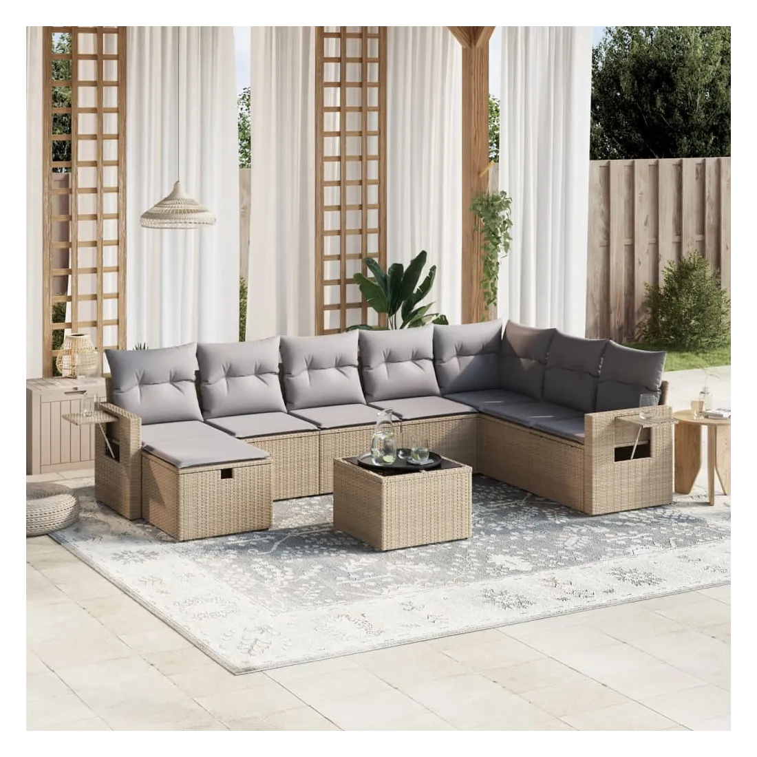 Cet ensemble de canapés de jardin est le complément parfait de votre arrière-cour, terrasse ou patio, offrant un espace confortable et accueillant pour discuter avec la famille et les amis ou simplement se détendre et profiter de l'extérieur. Matériau durable : la résine tressée, également connue sous le nom de poly rotin, est un matériau synthétique solide et nécessitant peu d'entretien qui ressemble au rotin naturel. Il est léger, facile à nettoyer et couramment utilisé pour les meubles d'extérieur en raison de sa durabilité et de ses propriétés de résistance aux intempéries.Dessus en verre : le dessus de la table d'extérieur est fabriqué en verre trempé solide et durable, ce qui le rend facile à nettoyer avec un chiffon humide et ajoute une touche d'élégance à votre espace extérieur.Housse amovible et lavable : ces coussins de siège sont dotés de housses amovibles pour un lavage et un entretien faciles.Cadre robuste et stable : le cadre en acier enduit de poudre assure la solidité et la stabilité du meuble de jardin pour une utilisation quotidienne à l'extérieur.Conception modulaire : cet ensemble de meubles d'extérieur a une conception modulaire, ce qui le rend complètement flexible et facile à déplacer, afin que vous puissiez créer un agencement de meubles d'extérieur personnalisé. Bon à savoir :Pour que vos meubles d'extérieur restent beaux, nous vous recommandons de les protéger avec une housse imperméable.