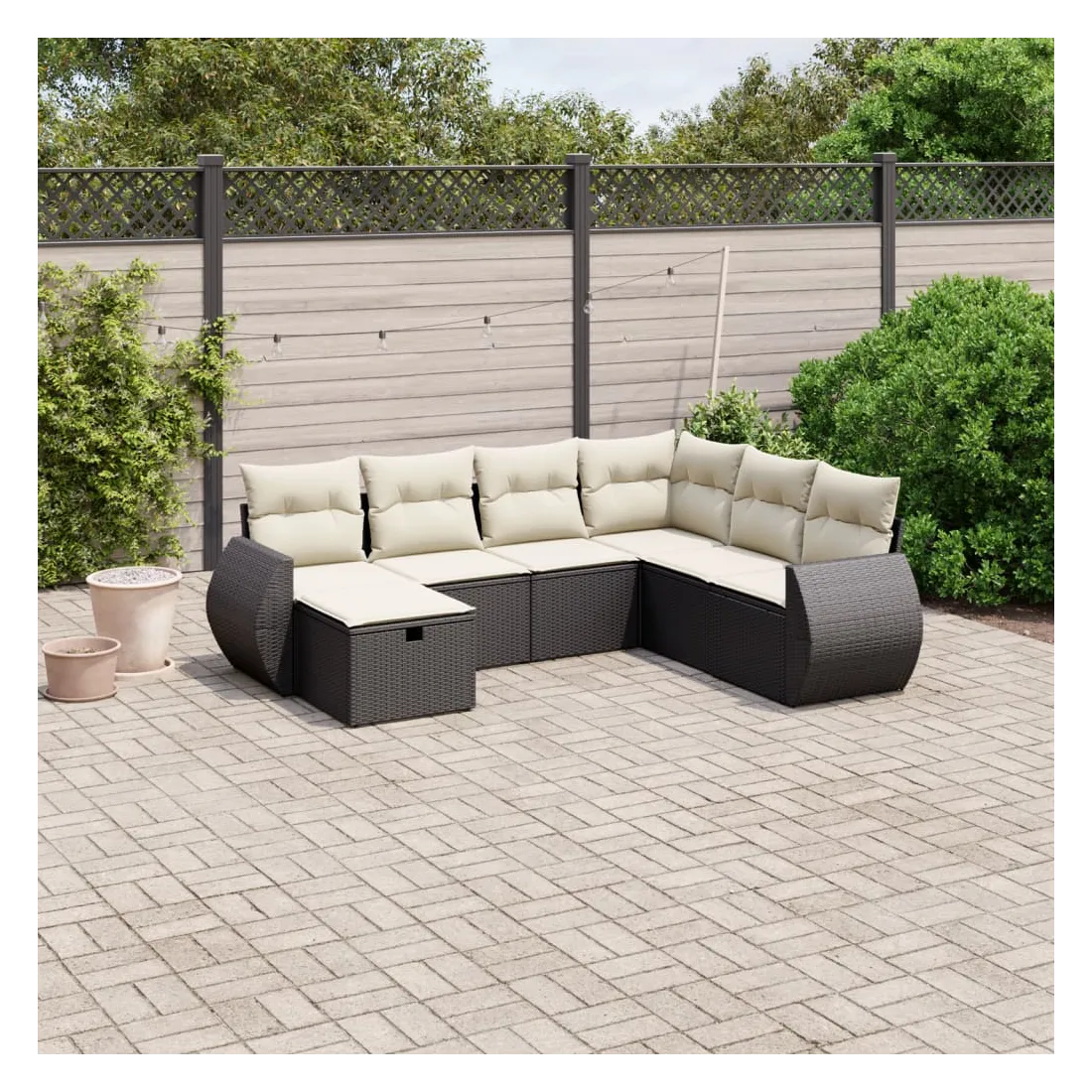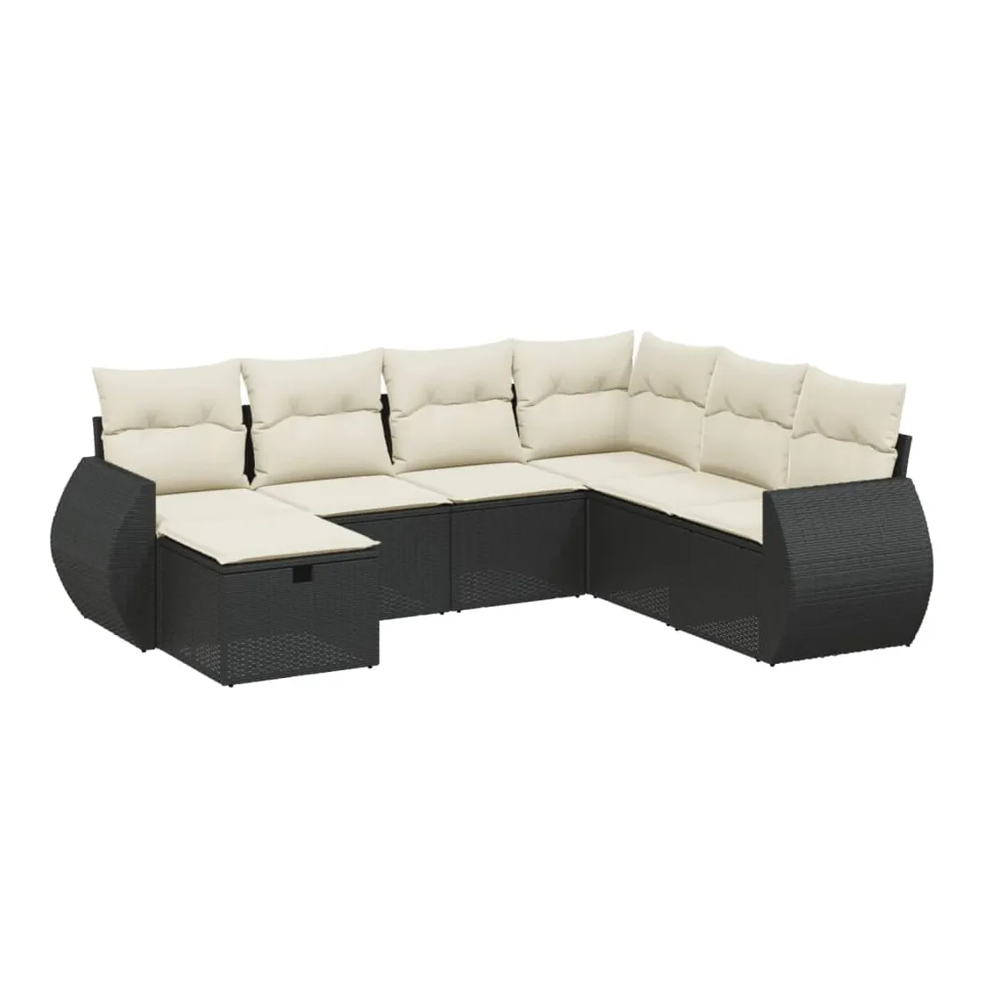 Salon de jardin 7 pcs avec coussins noir résine tressée