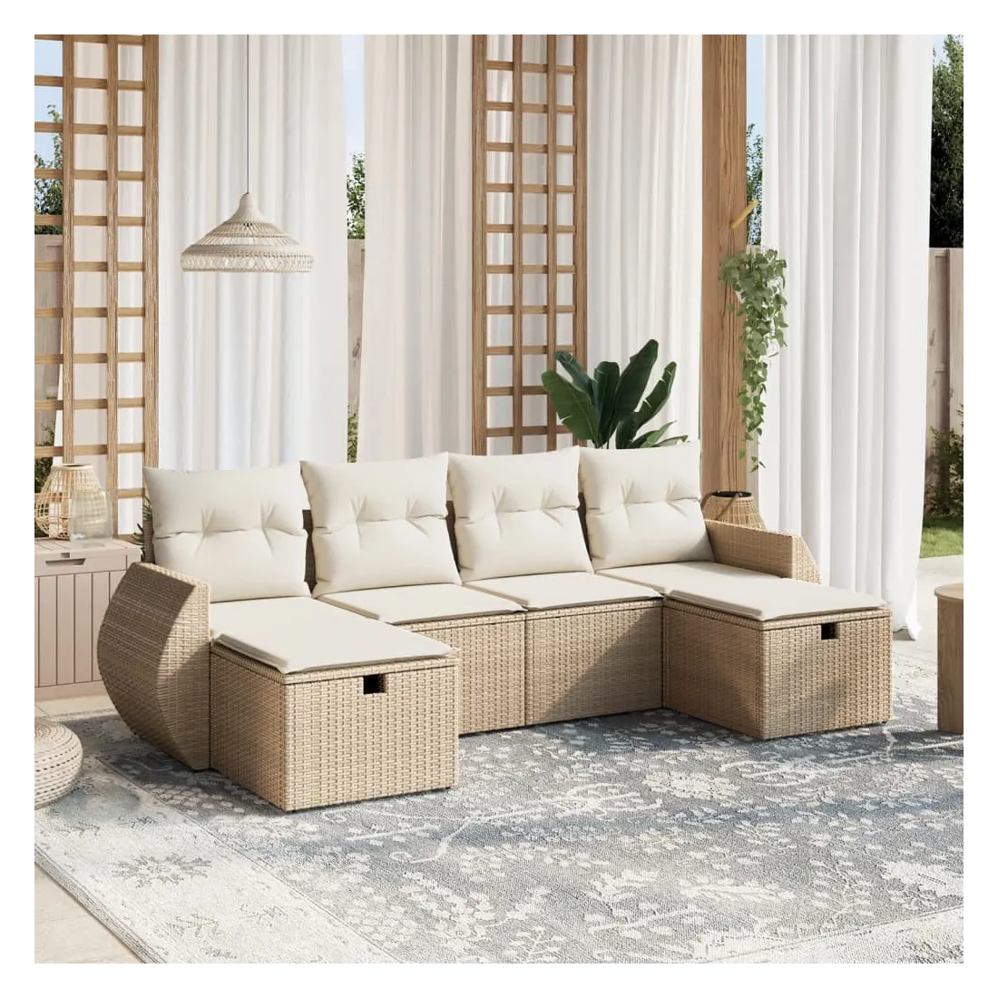 Cet ensemble de canapés de jardin est le complément parfait de votre arrière-cour, terrasse ou patio, offrant un espace confortable et accueillant pour discuter avec la famille et les amis ou simplement se détendre et profiter de l'extérieur. Matériau durable : la résine tressée, également connue sous le nom de poly rotin, est un matériau synthétique solide et nécessitant peu d'entretien qui ressemble au rotin naturel. Il est léger, facile à nettoyer et couramment utilisé pour les meubles d'extérieur en raison de sa durabilité et de ses propriétés de résistance aux intempéries.Expérience d'assise confortable : ce mobilier d'extérieur, doté de coussins épais, offre une expérience d'assise confortable.Housse amovible et lavable : ces coussins de siège sont dotés de housses amovibles pour un lavage et un entretien faciles.Cadre robuste et stable : le cadre en acier enduit de poudre assure la solidité et la stabilité du meuble de jardin pour une utilisation quotidienne à l'extérieur.Conception modulaire : cet ensemble de meubles d'extérieur a une conception modulaire, ce qui le rend complètement flexible et facile à déplacer, afin que vous puissiez créer un agencement de meubles d'extérieur personnalisé. Bon à savoir :Pour que vos meubles d'extérieur restent beaux, nous vous recommandons de les protéger avec une housse imperméable.