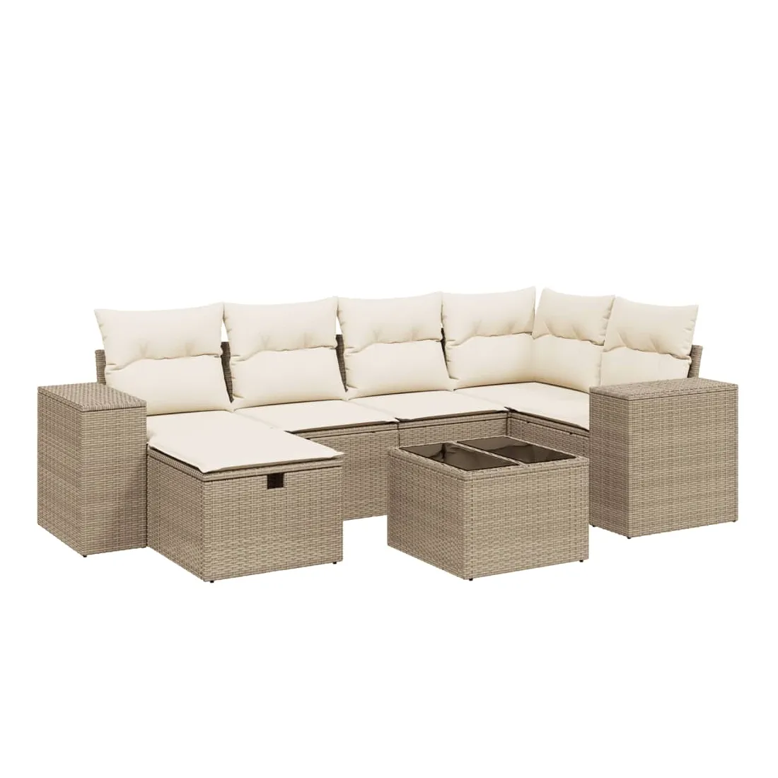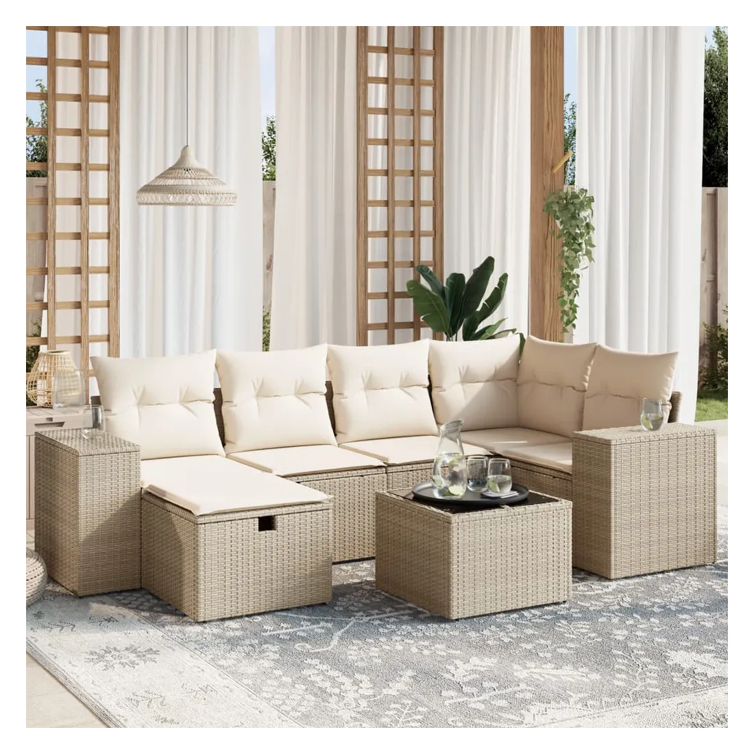 Cet ensemble de canapés de jardin est le complément parfait de votre arrière-cour, terrasse ou patio, offrant un espace confortable et accueillant pour discuter avec la famille et les amis ou simplement se détendre et profiter de l'extérieur. Matériau durable : la résine tressée, également connue sous le nom de poly rotin, est un matériau synthétique solide et nécessitant peu d'entretien qui ressemble au rotin naturel. Il est léger, facile à nettoyer et couramment utilisé pour les meubles d'extérieur en raison de sa durabilité et de ses propriétés de résistance aux intempéries.Dessus en verre : le dessus de la table d'extérieur est fabriqué en verre trempé solide et durable, ce qui le rend facile à nettoyer avec un chiffon humide et ajoute une touche d'élégance à votre espace extérieur.Housse amovible et lavable : ces coussins de siège sont dotés de housses amovibles pour un lavage et un entretien faciles.Cadre robuste et stable : le cadre en acier enduit de poudre assure la solidité et la stabilité du meuble de jardin pour une utilisation quotidienne à l'extérieur.Conception modulaire : cet ensemble de meubles d'extérieur a une conception modulaire, ce qui le rend complètement flexible et facile à déplacer, afin que vous puissiez créer un agencement de meubles d'extérieur personnalisé. Bon à savoir :Pour que vos meubles d'extérieur restent beaux, nous vous recommandons de les protéger avec une housse imperméable.
