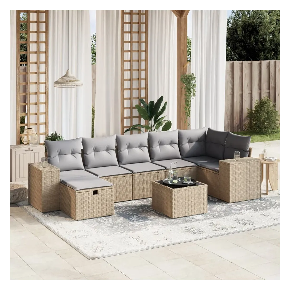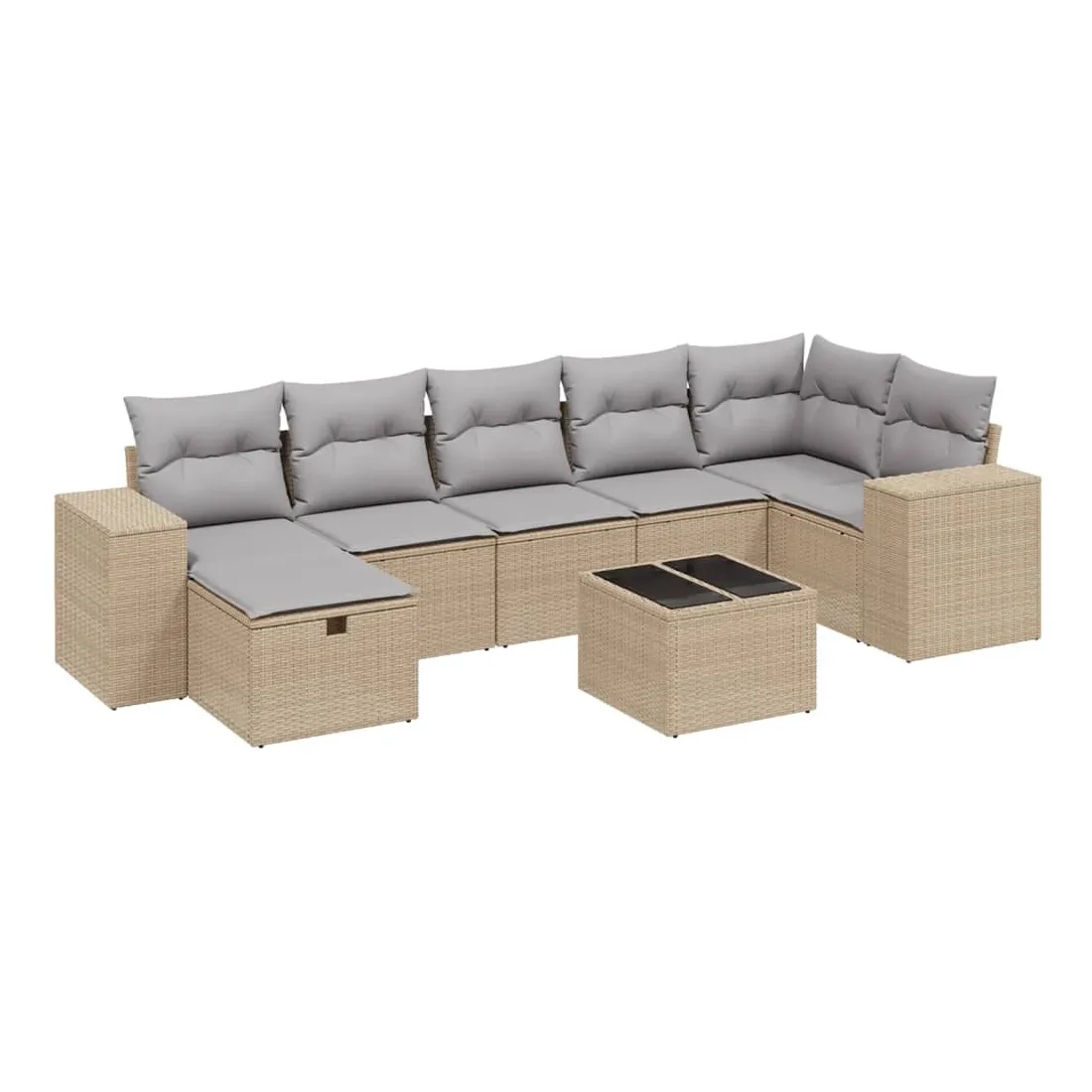 Salon de jardin avec coussins 8pcs mélange beige résine tressée