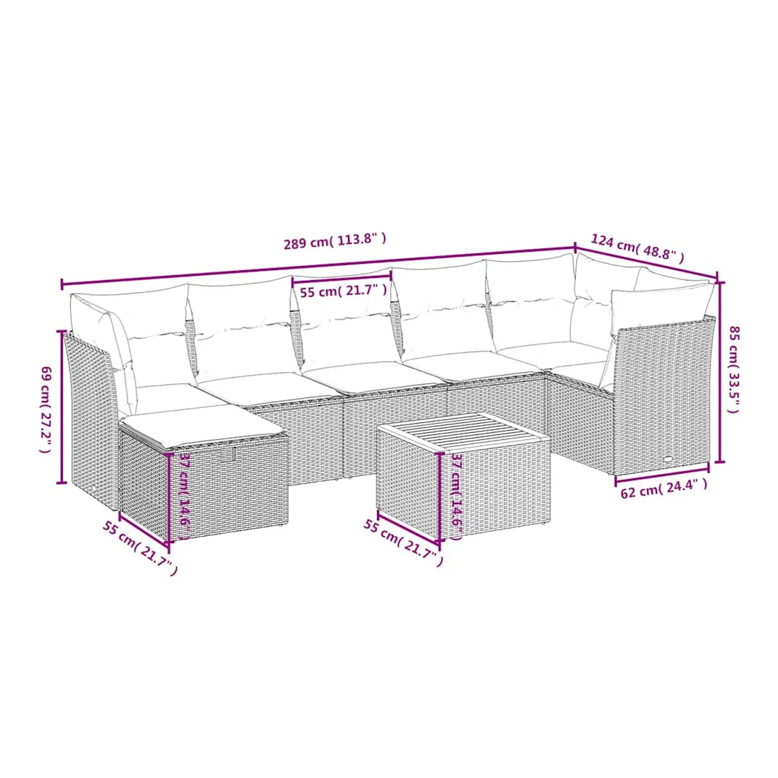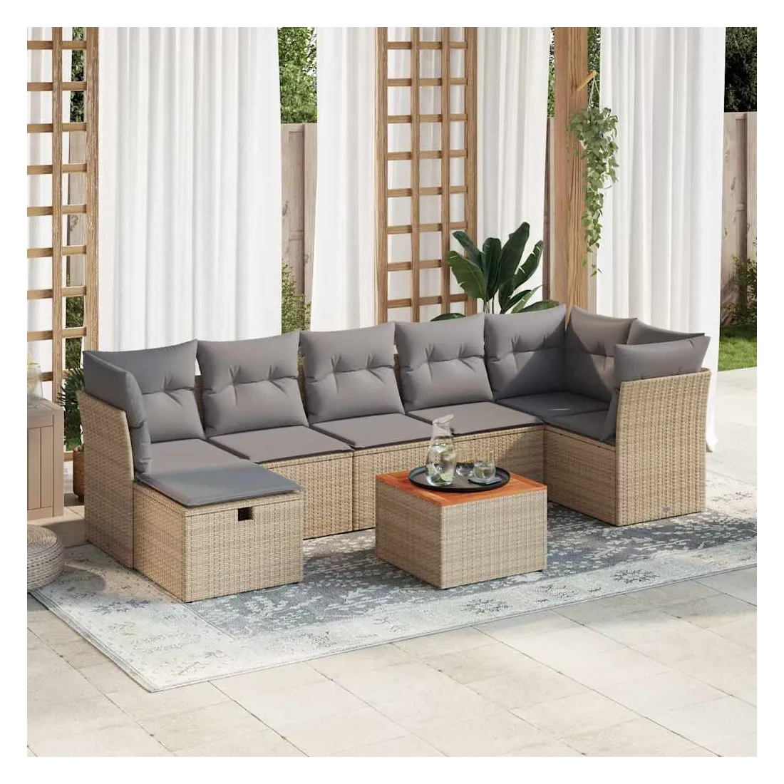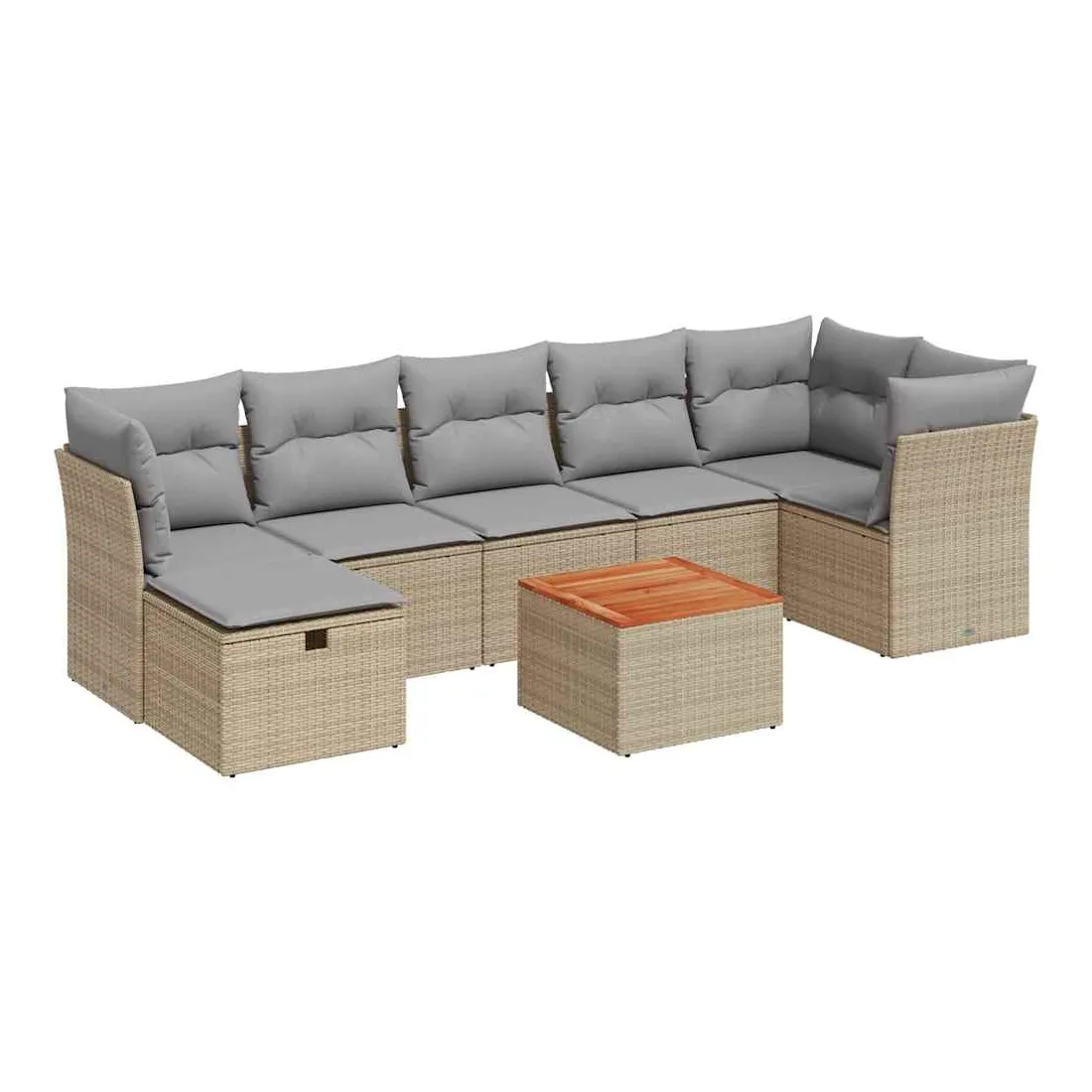 Salon de jardin avec coussins 8pcs mélange beige résine tressée