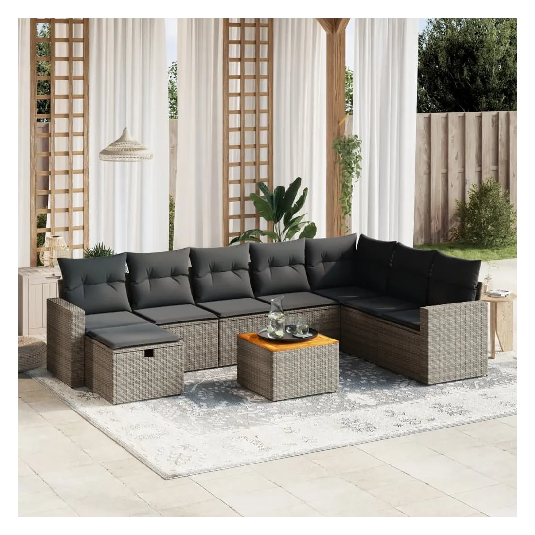 Cet ensemble de canapés de jardin est le complément parfait de votre arrière-cour, terrasse ou patio, offrant un espace confortable et accueillant pour discuter avec la famille et les amis ou simplement se détendre et profiter de l'extérieur. Matériau durable : la résine tressée, également connue sous le nom de poly rotin, est un matériau synthétique solide et nécessitant peu d'entretien qui ressemble au rotin naturel. Il est léger, facile à nettoyer et couramment utilisé pour les meubles d'extérieur en raison de sa durabilité et de ses propriétés de résistance aux intempéries.Dessus stable et facile à nettoyer : cette table de jardin a un dessus en bois d'acacia robuste, durable et facile à nettoyer avec un chiffon humide.Housse amovible et lavable : ces coussins de siège sont dotés de housses amovibles pour un lavage et un entretien faciles.Cadre robuste et stable : le cadre en acier enduit de poudre assure la solidité et la stabilité du meuble de jardin pour une utilisation quotidienne à l'extérieur.Conception modulaire : cet ensemble de meubles d'extérieur a une conception modulaire, ce qui le rend complètement flexible et facile à déplacer, afin que vous puissiez créer un agencement de meubles d'extérieur personnalisé. Bon à savoir :Pour que vos meubles d'extérieur restent beaux, nous vous recommandons de les protéger avec une housse imperméable.