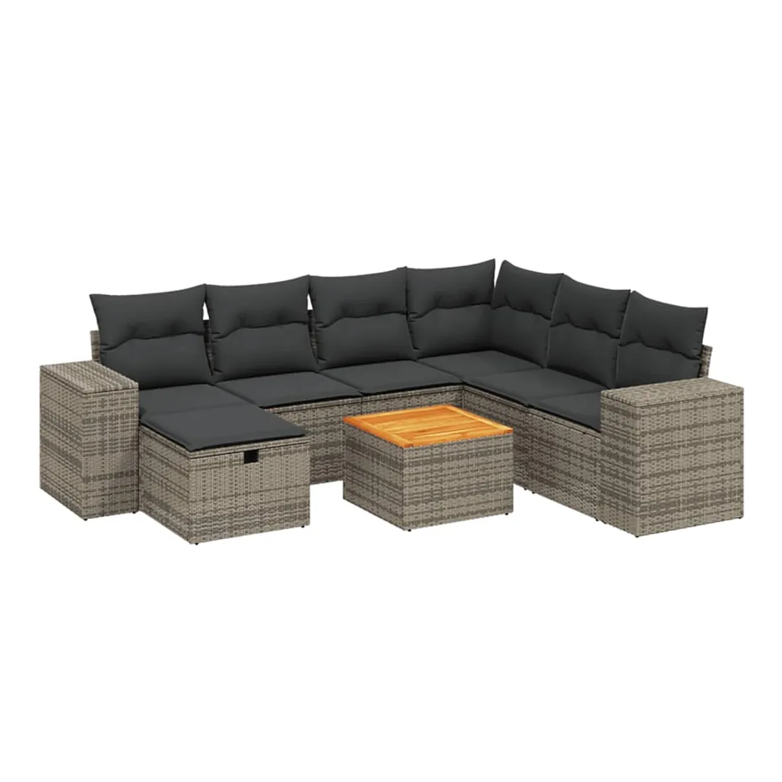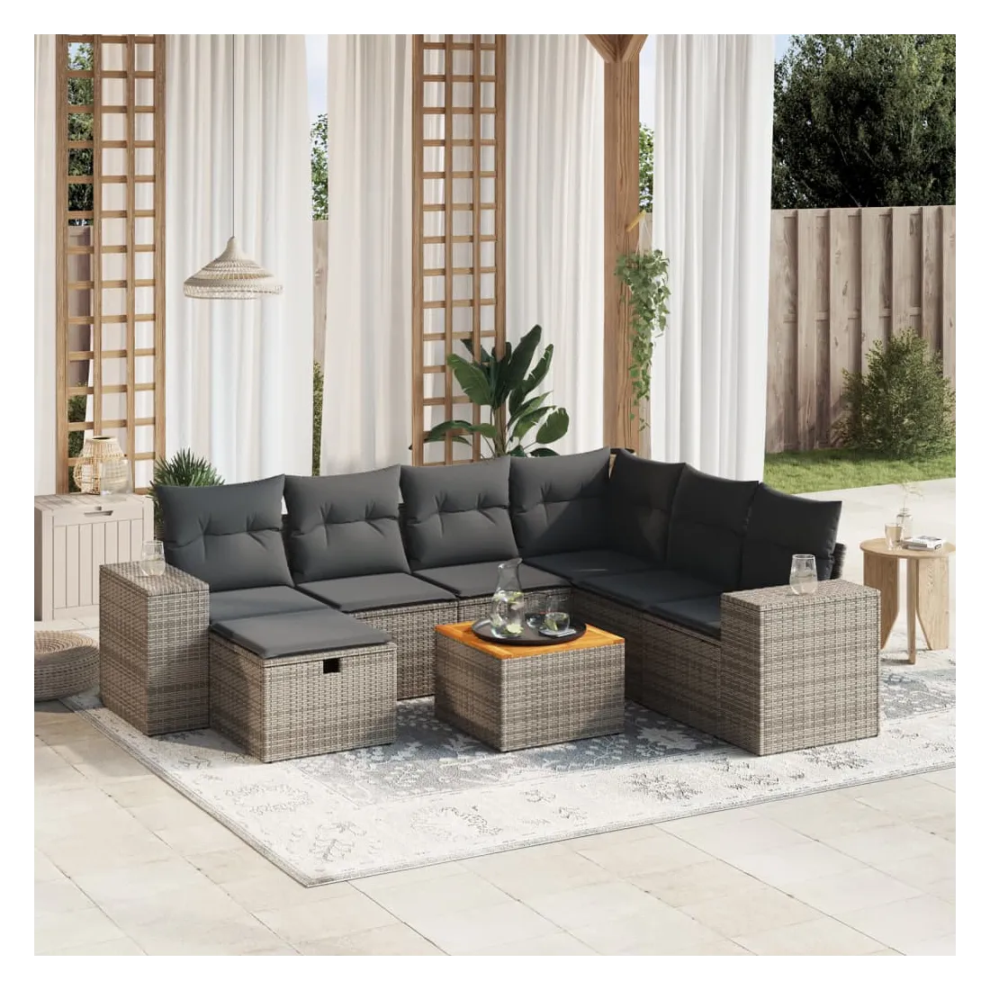 Cet ensemble de canapés de jardin est le complément parfait de votre arrière-cour, terrasse ou patio, offrant un espace confortable et accueillant pour discuter avec la famille et les amis ou simplement se détendre et profiter de l'extérieur. Matériau durable : la résine tressée, également connue sous le nom de poly rotin, est un matériau synthétique solide et nécessitant peu d'entretien qui ressemble au rotin naturel. Il est léger, facile à nettoyer et couramment utilisé pour les meubles d'extérieur en raison de sa durabilité et de ses propriétés de résistance aux intempéries.Dessus stable et facile à nettoyer : cette table de jardin a un dessus en bois d'acacia robuste, durable et facile à nettoyer avec un chiffon humide.Housse amovible et lavable : ces coussins de siège sont dotés de housses amovibles pour un lavage et un entretien faciles.Cadre robuste et stable : le cadre en acier enduit de poudre assure la solidité et la stabilité du meuble de jardin pour une utilisation quotidienne à l'extérieur.Conception modulaire : cet ensemble de meubles d'extérieur a une conception modulaire, ce qui le rend complètement flexible et facile à déplacer, afin que vous puissiez créer un agencement de meubles d'extérieur personnalisé. Bon à savoir :Pour que vos meubles d'extérieur restent beaux, nous vous recommandons de les protéger avec une housse imperméable.