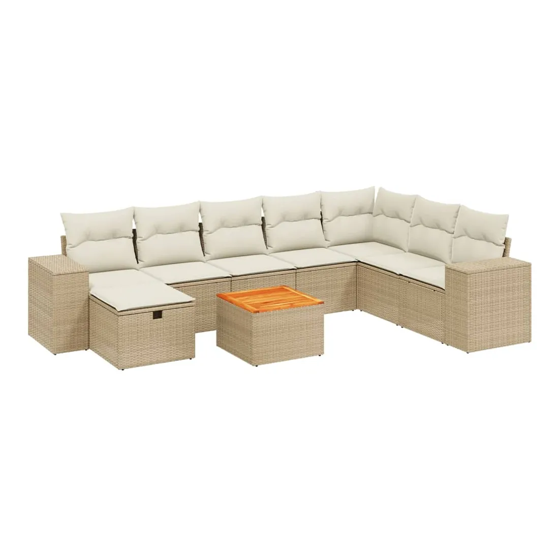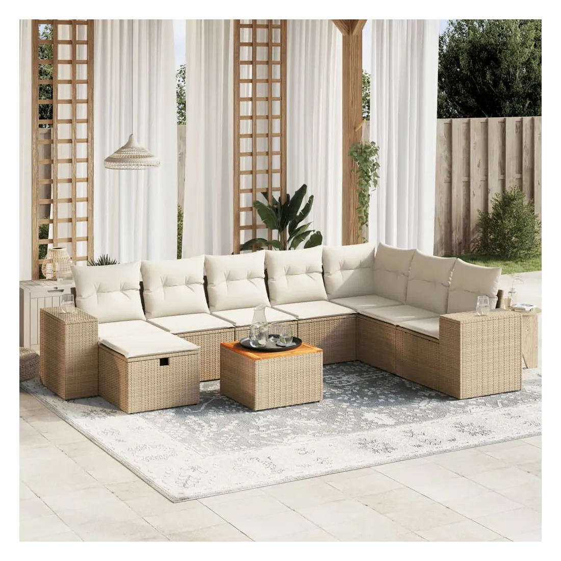 Cet ensemble de canapés de jardin est le complément parfait de votre arrière-cour, terrasse ou patio, offrant un espace confortable et accueillant pour discuter avec la famille et les amis ou simplement se détendre et profiter de l'extérieur. Matériau durable : la résine tressée, également connue sous le nom de poly rotin, est un matériau synthétique solide et nécessitant peu d'entretien qui ressemble au rotin naturel. Il est léger, facile à nettoyer et couramment utilisé pour les meubles d'extérieur en raison de sa durabilité et de ses propriétés de résistance aux intempéries.Dessus stable et facile à nettoyer : cette table de jardin a un dessus en bois d'acacia robuste, durable et facile à nettoyer avec un chiffon humide.Housse amovible et lavable : ces coussins de siège sont dotés de housses amovibles pour un lavage et un entretien faciles.Cadre robuste et stable : le cadre en acier enduit de poudre assure la solidité et la stabilité du meuble de jardin pour une utilisation quotidienne à l'extérieur.Conception modulaire : cet ensemble de meubles d'extérieur a une conception modulaire, ce qui le rend complètement flexible et facile à déplacer, afin que vous puissiez créer un agencement de meubles d'extérieur personnalisé. Bon à savoir :Pour que vos meubles d'extérieur restent beaux, nous vous recommandons de les protéger avec une housse imperméable.