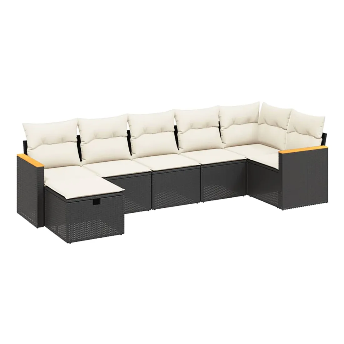 Salon de jardin 7 pcs avec coussins noir résine tressée