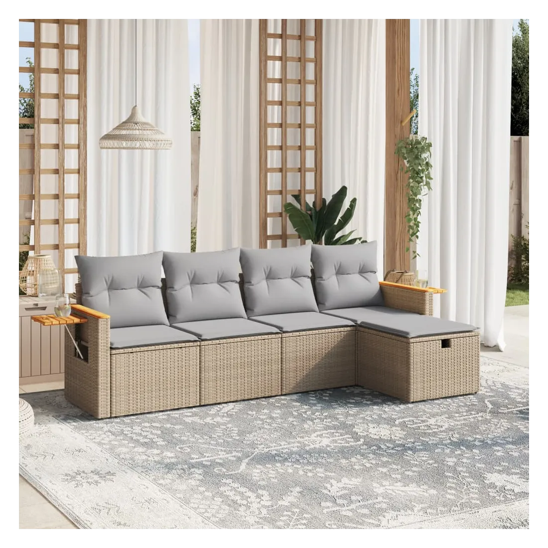 Cet ensemble de canapés de jardin est le complément parfait de votre arrière-cour, terrasse ou patio, offrant un espace confortable et accueillant pour discuter avec la famille et les amis ou simplement se détendre et profiter de l'extérieur. Matériau durable : la résine tressée, également connue sous le nom de poly rotin, est un matériau synthétique solide et nécessitant peu d'entretien qui ressemble au rotin naturel. Il est léger, facile à nettoyer et couramment utilisé pour les meubles d'extérieur en raison de sa durabilité et de ses propriétés de résistance aux intempéries.Expérience d'assise confortable : ce mobilier d'extérieur, doté de coussins épais, offre une expérience d'assise confortable.Housse amovible et lavable : ces coussins de siège sont dotés de housses amovibles pour un lavage et un entretien faciles.Cadre robuste et stable : le cadre en acier enduit de poudre assure la solidité et la stabilité du meuble de jardin pour une utilisation quotidienne à l'extérieur.Conception modulaire : cet ensemble de meubles d'extérieur a une conception modulaire, ce qui le rend complètement flexible et facile à déplacer, afin que vous puissiez créer un agencement de meubles d'extérieur personnalisé. Bon à savoir :Pour que vos meubles d'extérieur restent beaux, nous vous recommandons de les protéger avec une housse imperméable.