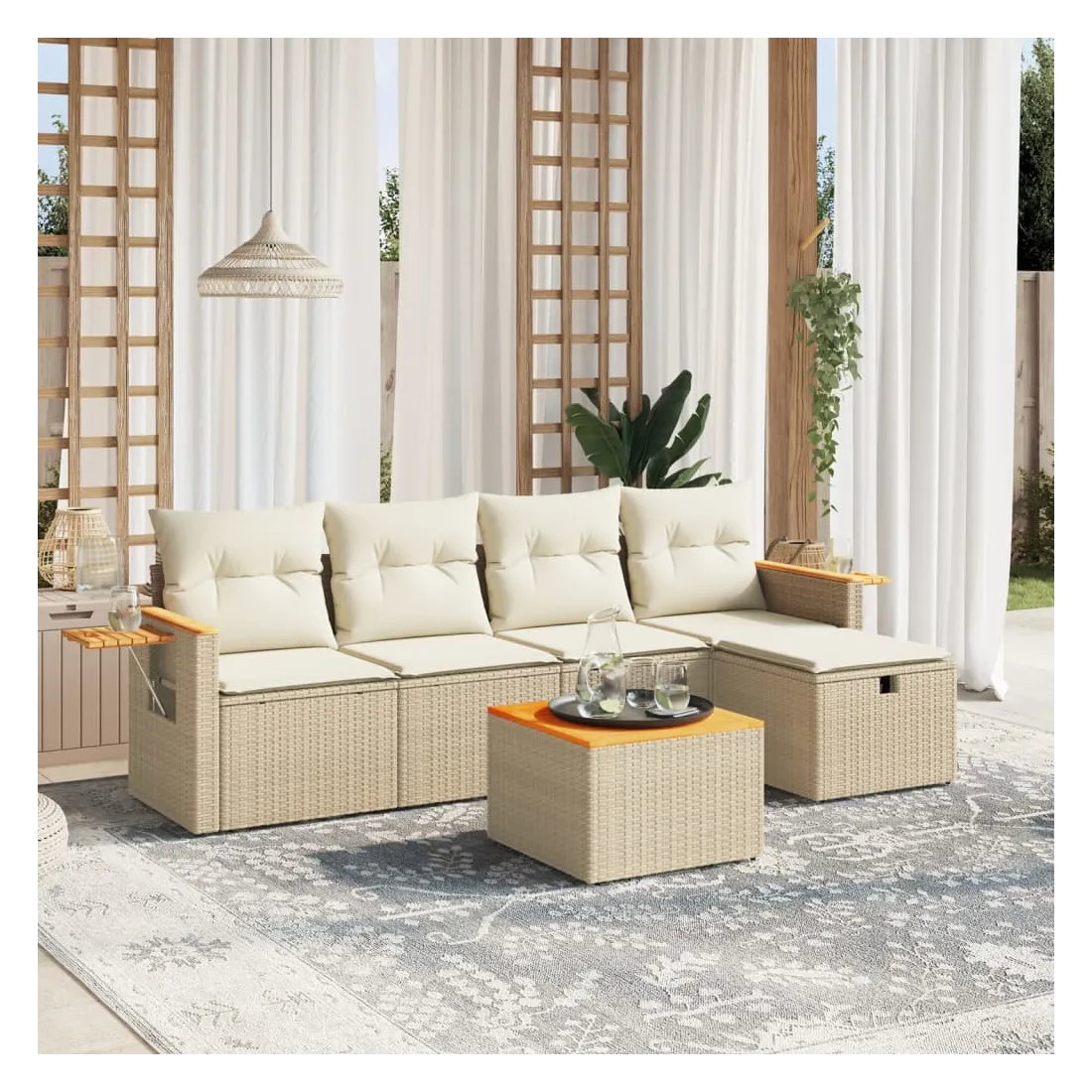 Cet ensemble de canapés de jardin est le complément parfait de votre arrière-cour, terrasse ou patio, offrant un espace confortable et accueillant pour discuter avec la famille et les amis ou simplement se détendre et profiter de l'extérieur. Matériau durable : la résine tressée, également connue sous le nom de poly rotin, est un matériau synthétique solide et nécessitant peu d'entretien qui ressemble au rotin naturel. Il est léger, facile à nettoyer et couramment utilisé pour les meubles d'extérieur en raison de sa durabilité et de ses propriétés de résistance aux intempéries.Dessus stable et facile à nettoyer : cette table de jardin a un dessus en bois d'acacia robuste, durable et facile à nettoyer avec un chiffon humide.Housse amovible et lavable : ces coussins de siège sont dotés de housses amovibles pour un lavage et un entretien faciles.Cadre robuste et stable : le cadre en acier enduit de poudre assure la solidité et la stabilité du meuble de jardin pour une utilisation quotidienne à l'extérieur.Conception modulaire : cet ensemble de meubles d'extérieur a une conception modulaire, ce qui le rend complètement flexible et facile à déplacer, afin que vous puissiez créer un agencement de meubles d'extérieur personnalisé. Bon à savoir :Pour que vos meubles d'extérieur restent beaux, nous vous recommandons de les protéger avec une housse imperméable.
