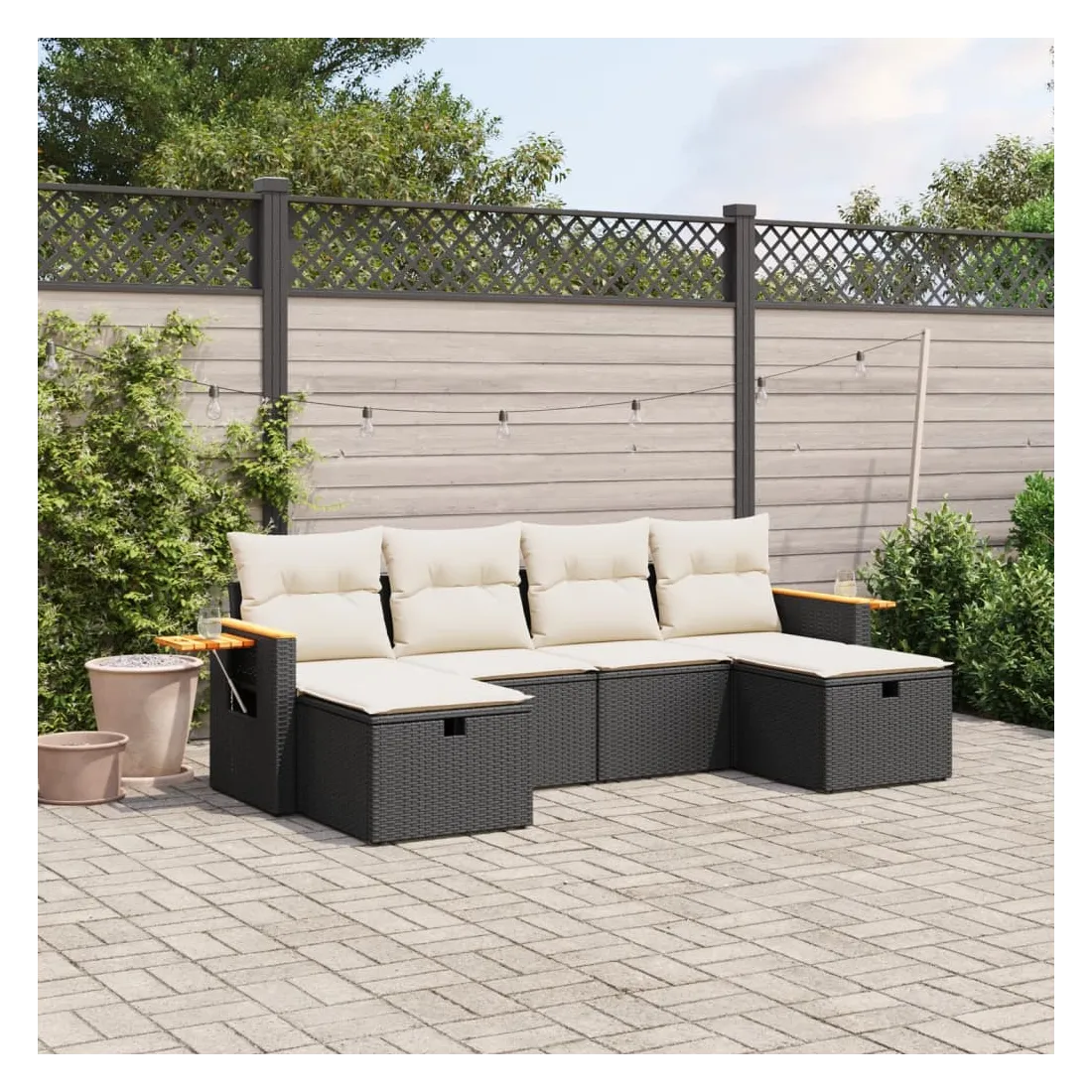 Cet ensemble de canapés de jardin est le complément parfait de votre arrière-cour, terrasse ou patio, offrant un espace confortable et accueillant pour discuter avec la famille et les amis ou simplement se détendre et profiter de l'extérieur. Matériau durable : la résine tressée, également connue sous le nom de poly rotin, est un matériau synthétique solide et nécessitant peu d'entretien qui ressemble au rotin naturel. Il est léger, facile à nettoyer et couramment utilisé pour les meubles d'extérieur en raison de sa durabilité et de ses propriétés de résistance aux intempéries.Expérience d'assise confortable : ce mobilier d'extérieur, doté de coussins épais, offre une expérience d'assise confortable.Housse amovible et lavable : ces coussins de siège sont dotés de housses amovibles pour un lavage et un entretien faciles.Cadre robuste et stable : le cadre en acier enduit de poudre assure la solidité et la stabilité du meuble de jardin pour une utilisation quotidienne à l'extérieur.Conception modulaire : cet ensemble de meubles d'extérieur a une conception modulaire, ce qui le rend complètement flexible et facile à déplacer, afin que vous puissiez créer un agencement de meubles d'extérieur personnalisé. Bon à savoir :Pour que vos meubles d'extérieur restent beaux, nous vous recommandons de les protéger avec une housse imperméable.