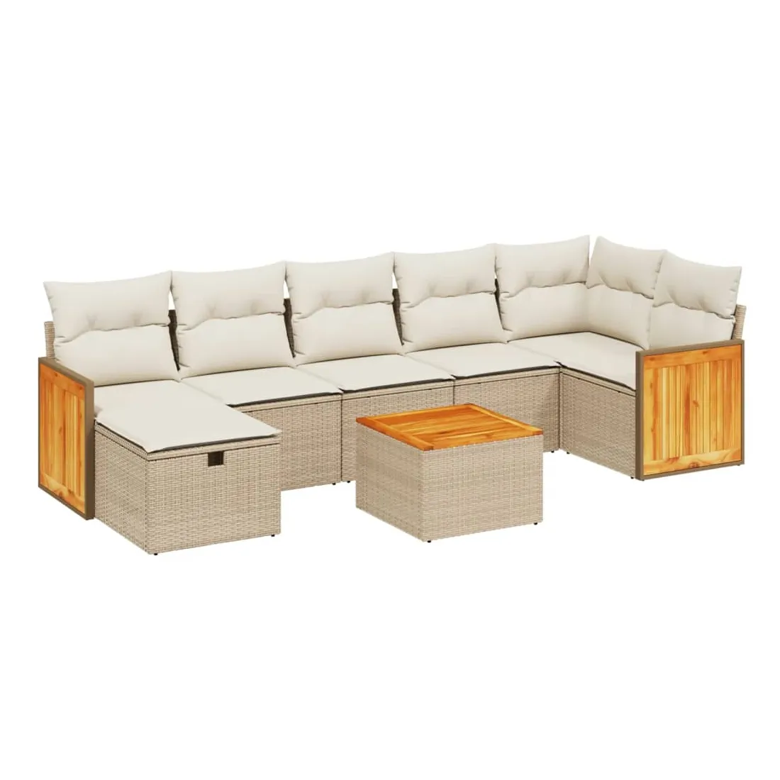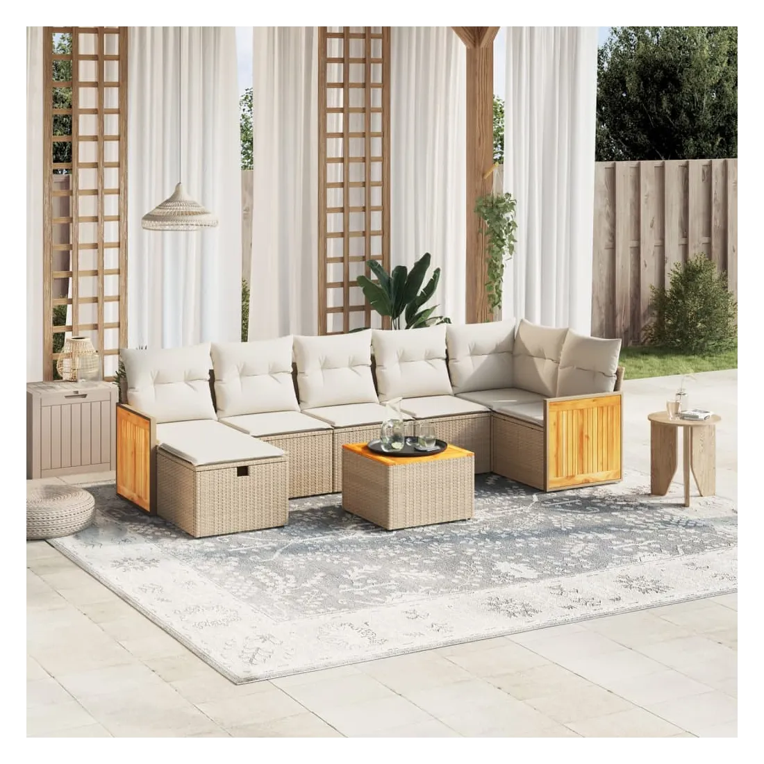 Salon de jardin avec coussins 8 pcs beige résine tressée