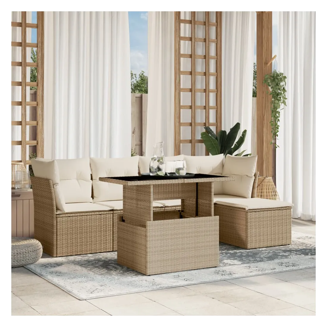 Cet ensemble de canapés de jardin est le complément parfait de votre arrière-cour, terrasse ou patio, offrant un espace confortable et accueillant pour discuter avec la famille et les amis ou simplement se détendre et profiter de l'extérieur. Matériau durable : la résine tressée, également connue sous le nom de poly rotin, est un matériau synthétique solide et nécessitant peu d'entretien qui ressemble au rotin naturel. Il est léger, facile à nettoyer et couramment utilisé pour les meubles d'extérieur en raison de sa durabilité et de ses propriétés de résistance aux intempéries.Dessus de table réglable : le dessus de table peut être soulevé pour rendre la table plus haute, ce qui transforme la table d'extérieur d'une table basse à une table de salle à manger. Elle est parfaite pour recevoir des invités ou prendre des repas à l'extérieur.Expérience d'assise confortable : ce mobilier d'extérieur, doté de coussins épais, offre une expérience d'assise confortable.Housse amovible et lavable : ces coussins de siège sont dotés de housses amovibles pour un lavage et un entretien faciles.Conception modulaire : cet ensemble de meubles d'extérieur a une conception modulaire, ce qui le rend complètement flexible et facile à déplacer, afin que vous puissiez créer un agencement de meubles d'extérieur personnalisé. Bon à savoir :Pour que vos meubles d'extérieur restent beaux, nous vous recommandons de les protéger avec une housse imperméable.