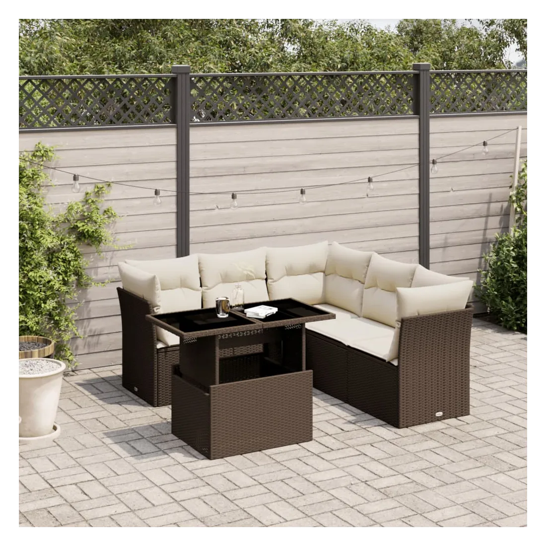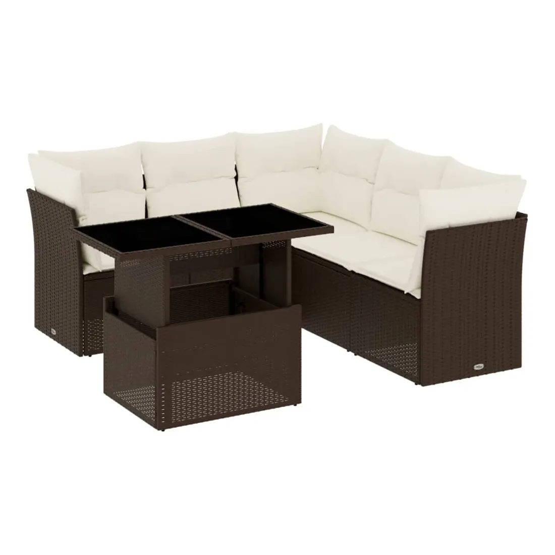 Salon de jardin avec coussins 6 pcs marron résine tressée