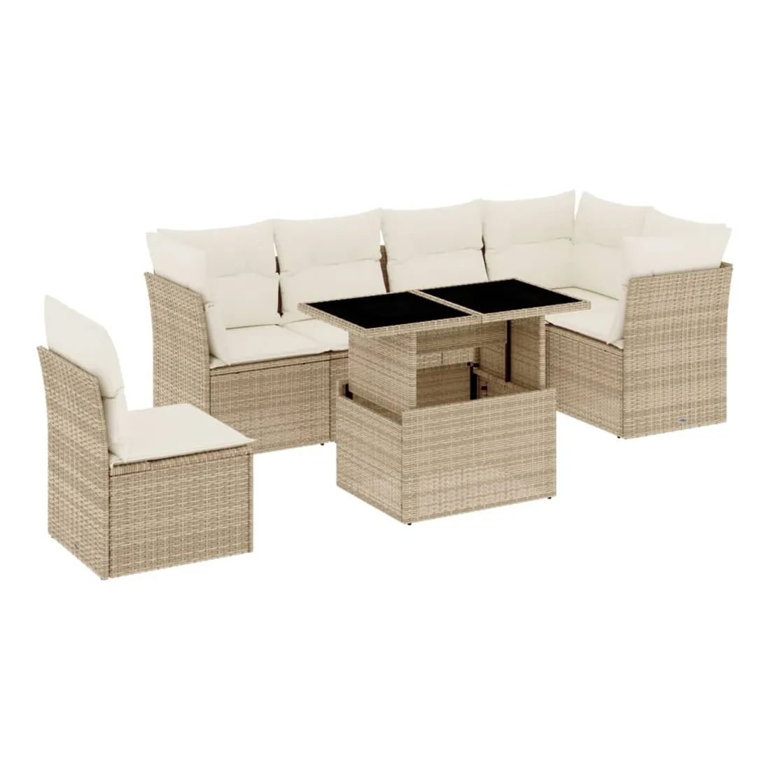 Salon de jardin avec coussins 7 pcs beige résine tressée