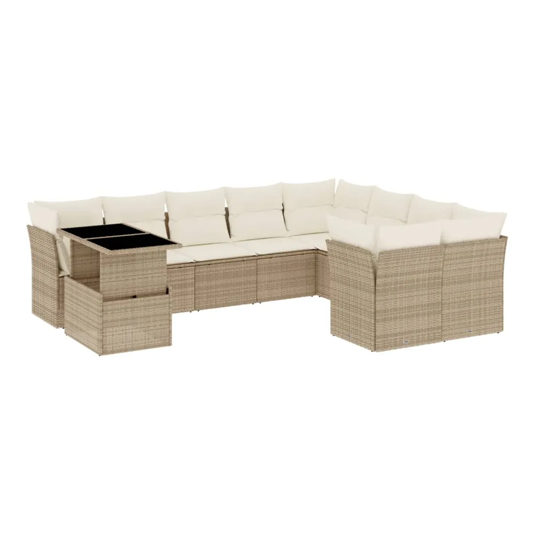 Salon de jardin avec coussins 10 pcs beige résine tressée