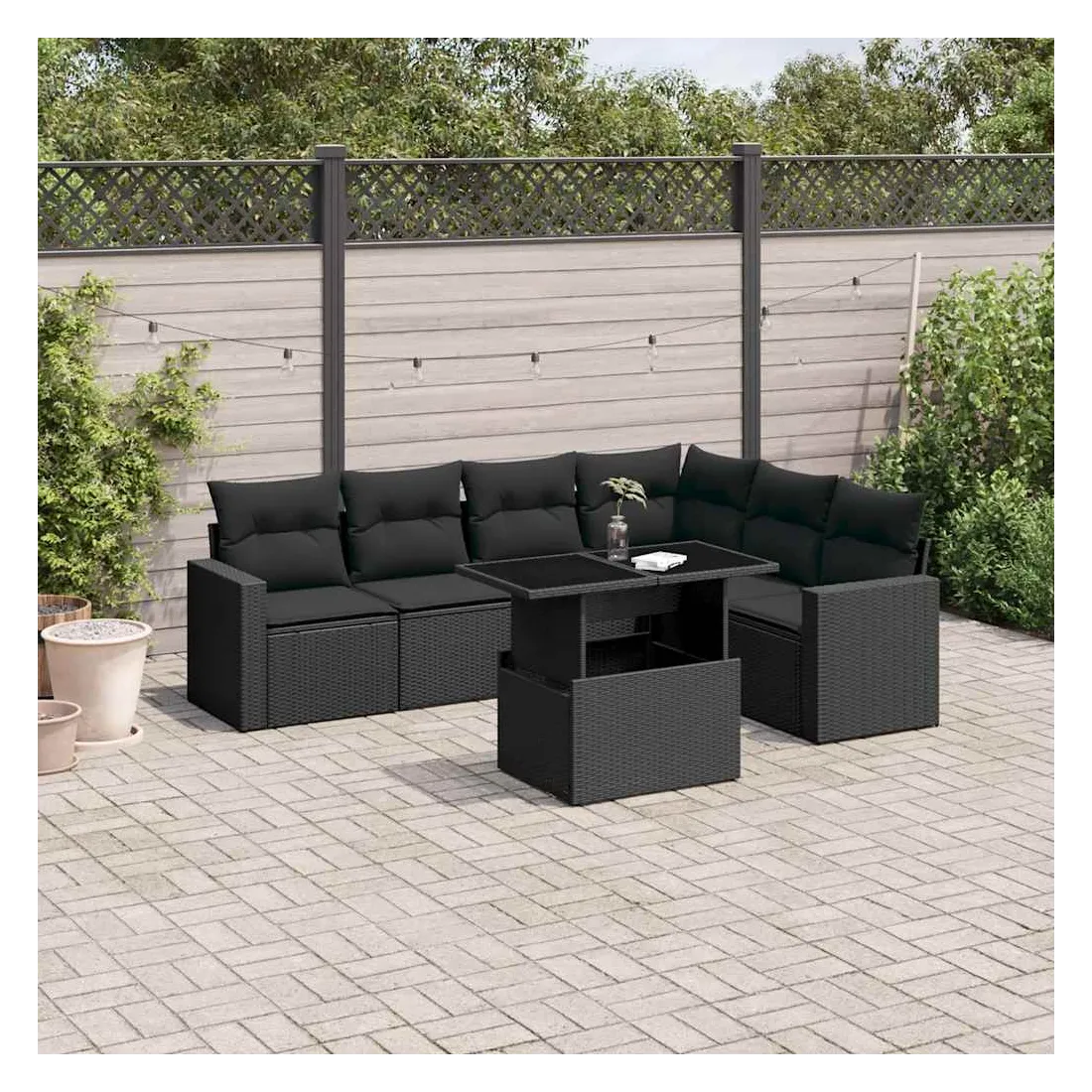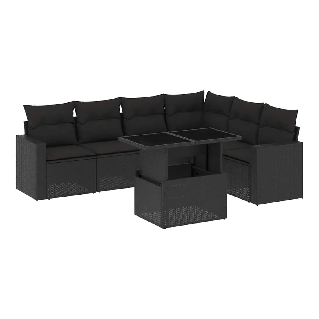 Salon de jardin 7 pcs avec coussins noir résine tressée