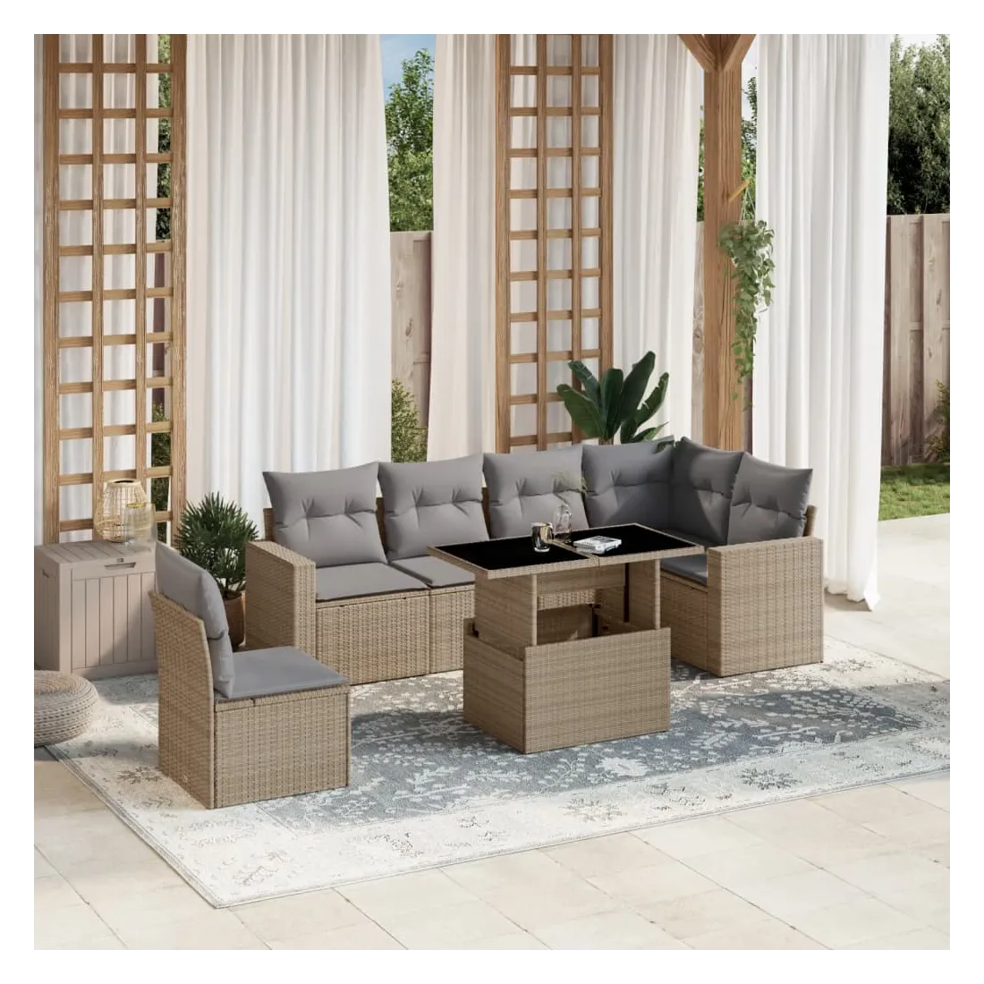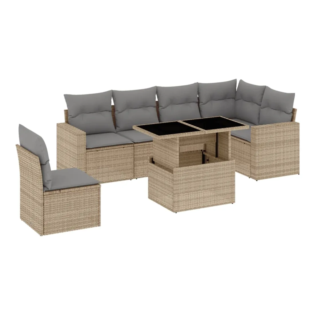 Salon de jardin avec coussins 7 pcs beige résine tressée