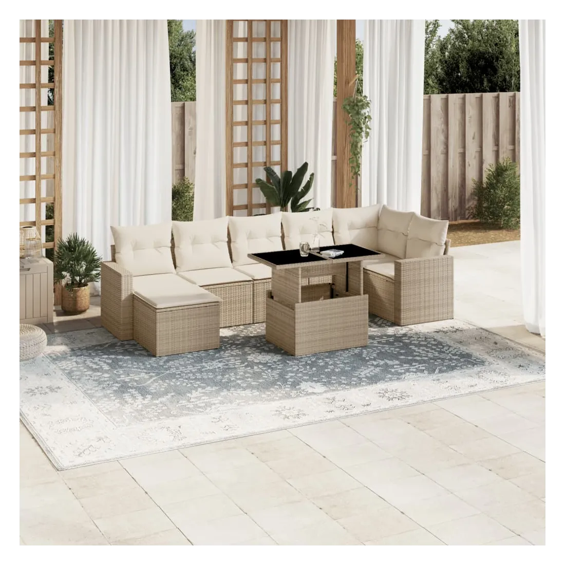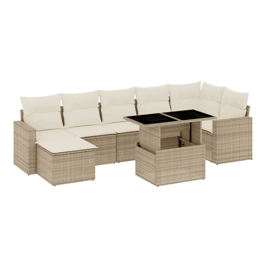 Salon de jardin avec coussins 8 pcs beige résine tressée