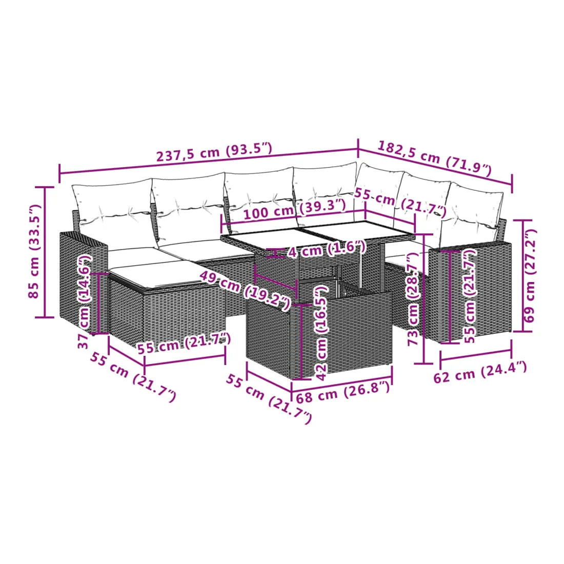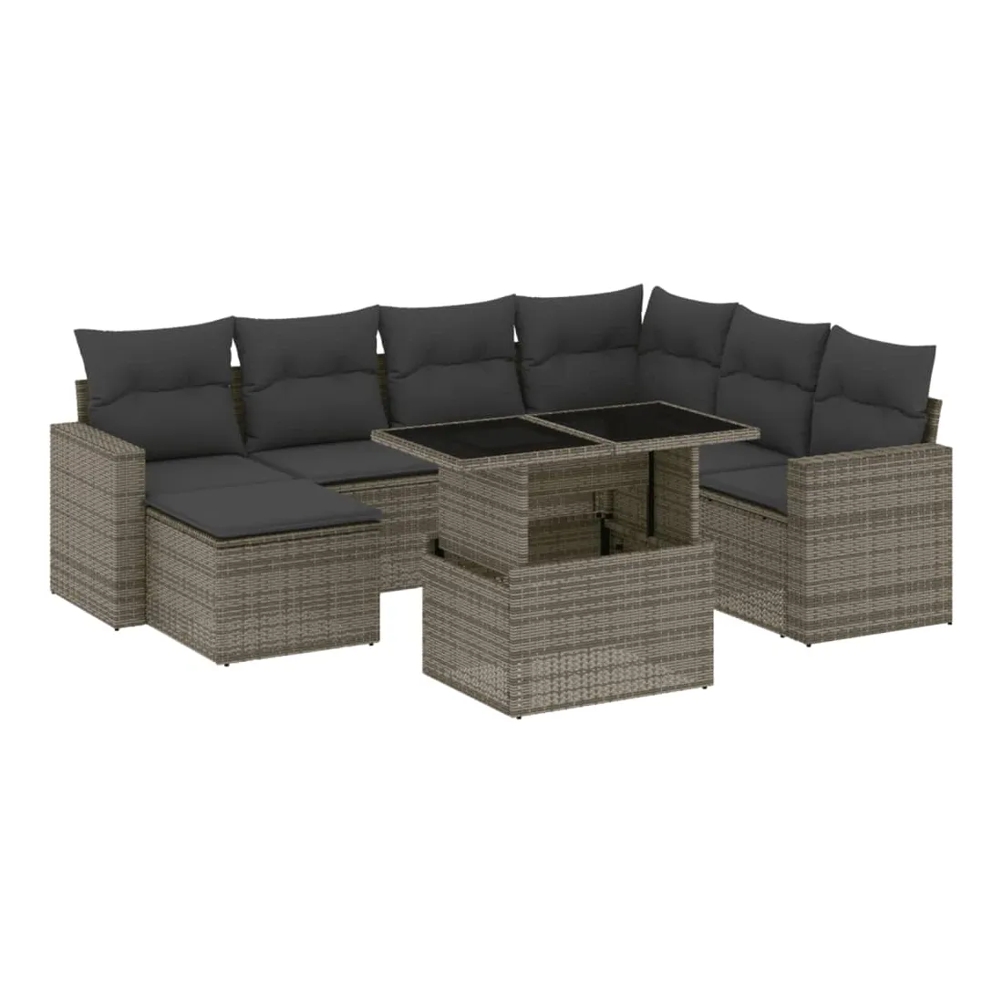 Salon de jardin 8 pcs avec coussins gris résine tressée